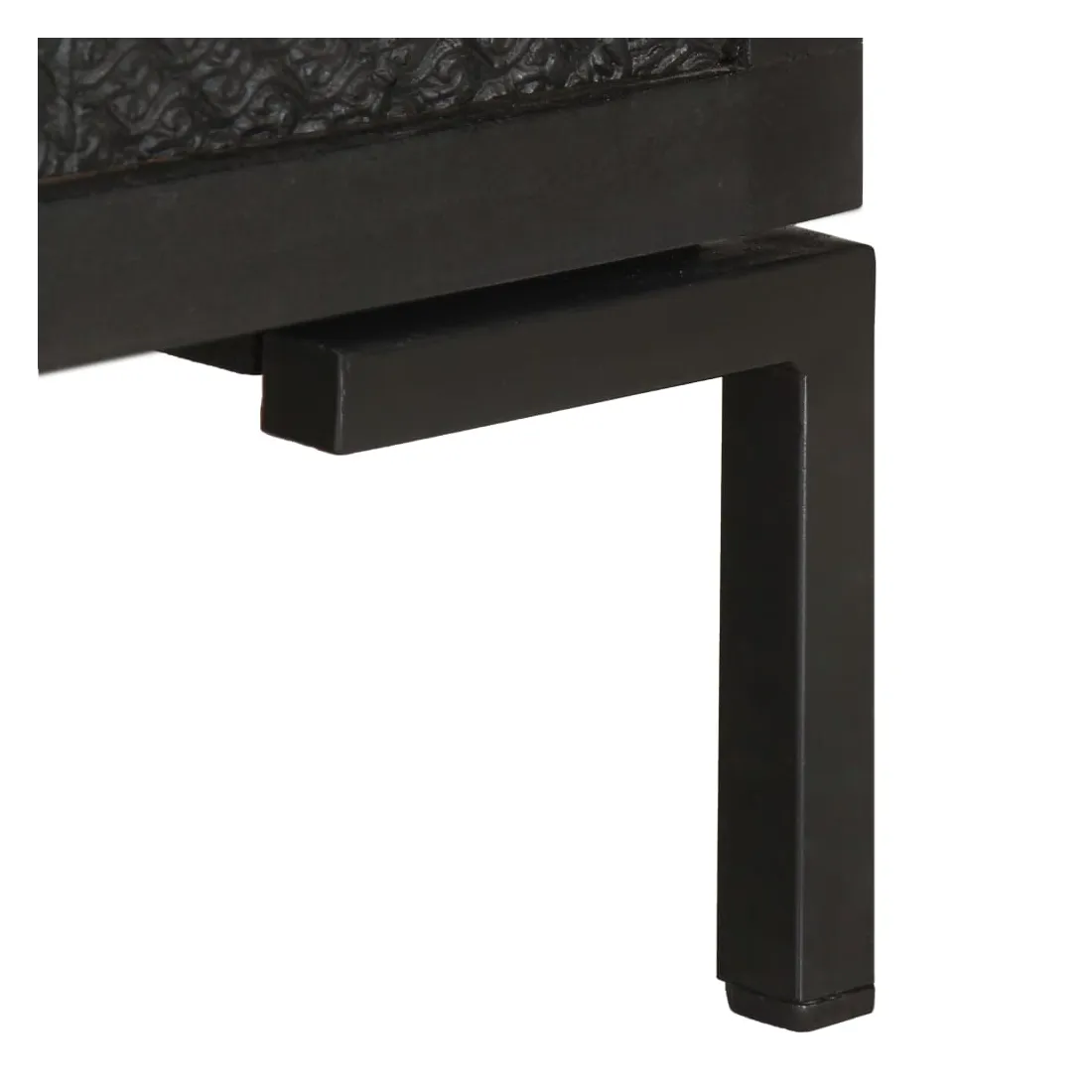- Matériau : bois de manguier solide avec finition noire, acier enduit de poudre