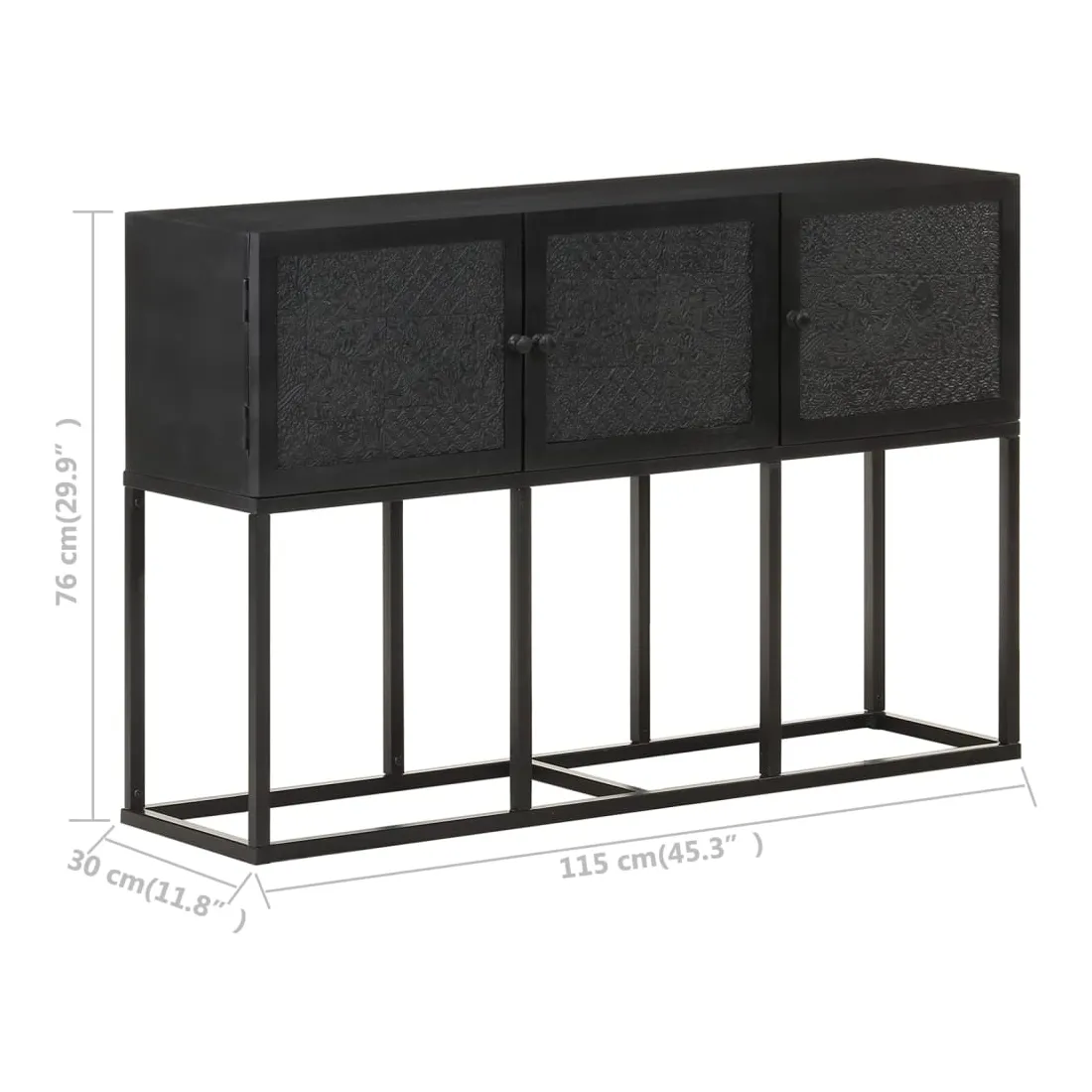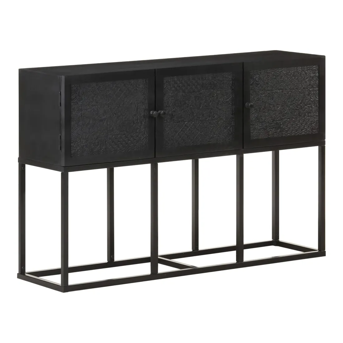 Si vous recherchez une touche simple de charme rustique et industriel à ajouter à votre décoration intérieure, ce buffet en bois sera parfait. L'armoire latérale est faite de bois de manguier solide, un bois dur tropical avec la force de soutenir le poids. Il résiste également à l’usure du temps, ce qui le rend stable et durable. Le cadre en acier enduit de poudre ajoute également une stabilité supplémentaire. Cette armoire comprend 3 portes offrant un vaste espace de rangement. De plus, le dessus en bois robuste est idéal pour exposer des objets décoratifs tels que des cadres photo, des plantes en pot, des vases, etc. Remarque importante : les couleurs et les grains peuvent varier d'une pièce à l'autre, rendant chaque pièce unique. La livraison est aléatoire, ce qui garantit l'exclusivité et l'individualité de votre produit.