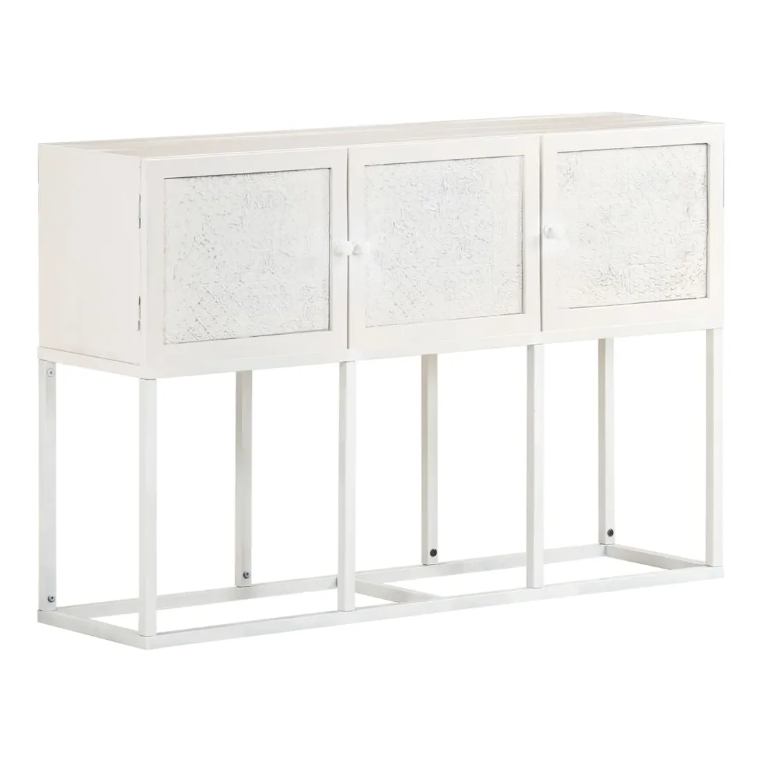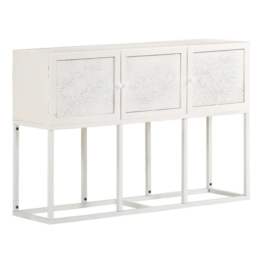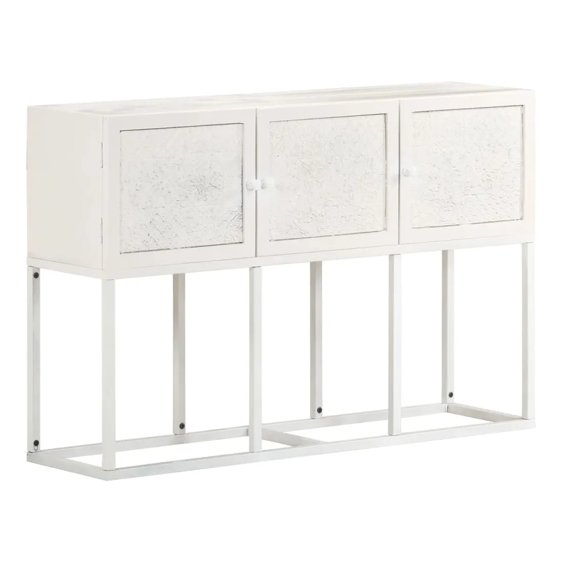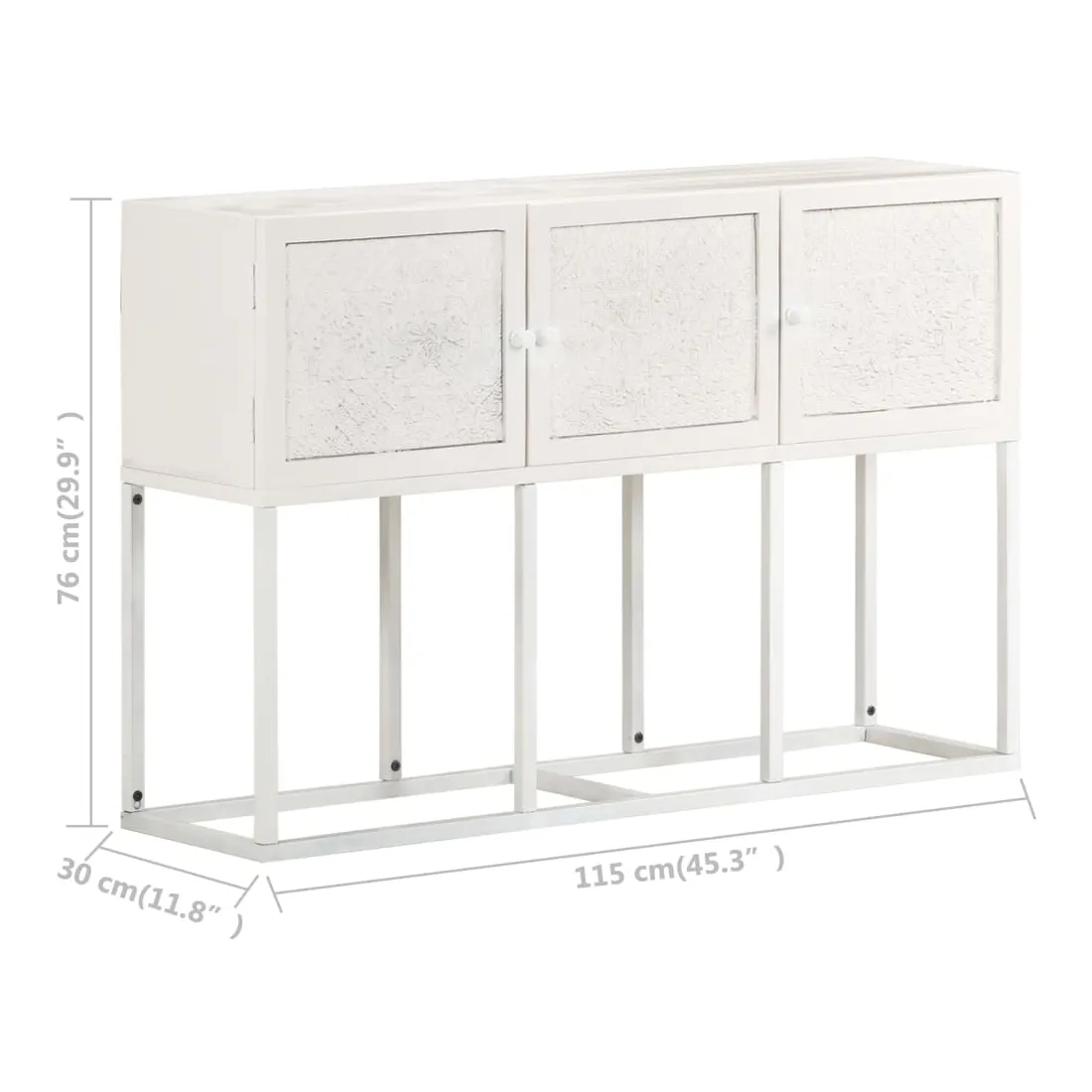 Si vous recherchez une touche simple de charme rustique et industriel à ajouter à votre décoration intérieure, ce buffet en bois sera parfait. L'armoire latérale est faite de bois de manguier solide, un bois dur tropical avec la force de soutenir le poids. Il résiste également à l’usure du temps, ce qui le rend stable et durable. Le cadre en fer enduit de poudre ajoute également une stabilité supplémentaire. Cette armoire comprend 3 portes offrant un vaste espace de rangement. De plus, le dessus en bois robuste est idéal pour exposer des objets décoratifs tels que des cadres photo, des plantes en pot, des vases, etc. Remarque importante : les couleurs et les grains peuvent varier d'une pièce à l'autre, rendant chaque pièce unique. La livraison est aléatoire, ce qui garantit l'exclusivité et l'individualité de votre produit.