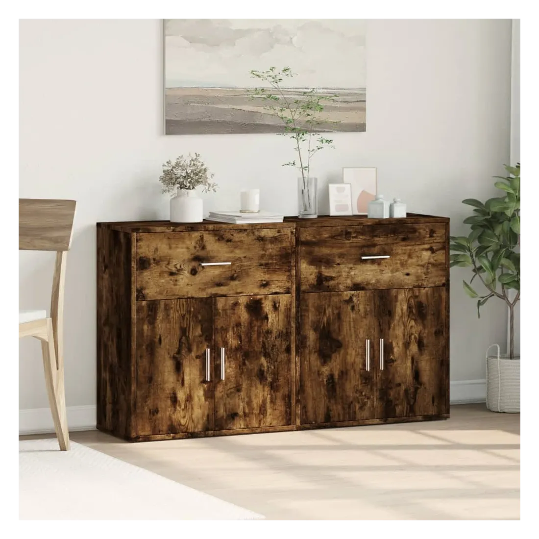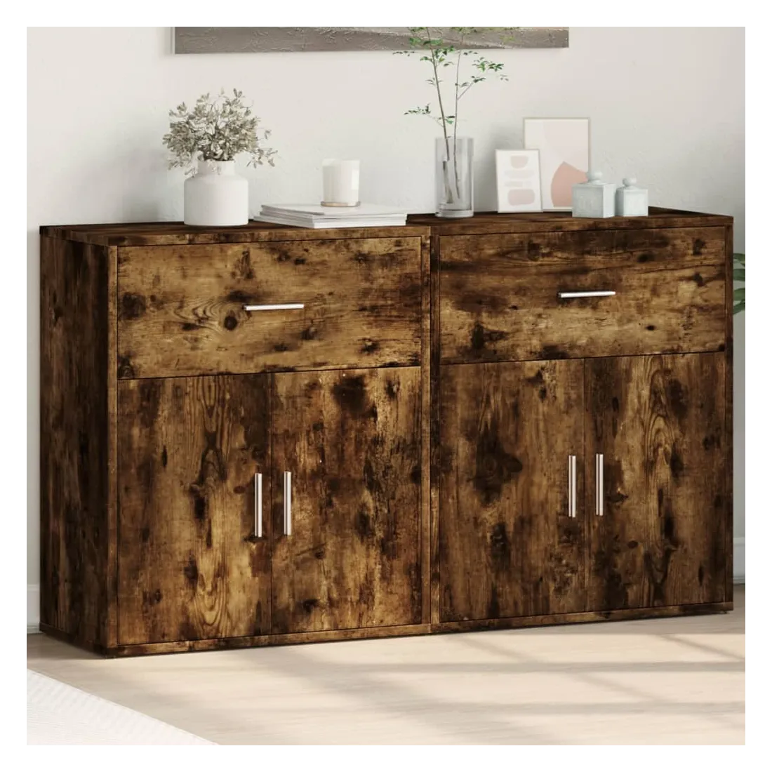 Ces buffets robustes sont conçus pour être un point de mire de votre pièce avec un design tendance mais pratique. Matériau durable : le bois d'ingénierie est d'une qualité exceptionnelle avec une surface lisse et présente également résistance, stabilité et résistance à l'humidité. Fabriquée en bois d'ingénierie, le meuble de rangement est facile à nettoyer avec un chiffon humide.Grand espace de rangement : ce buffet offre un espace de rangement pratique pour garder vos magazines, livres, télécommandes et autres petits objets bien organisés et à portée de main.Large application : le dessus de ce buffet offre plus d'espace pour placer des objets, adapté aux téléphones portables, livres, lampes, etc. Attention :Pour éviter qu'il ne bascule, ce produit doit être utilisé avec le dispositif de fixation murale (non fourni).