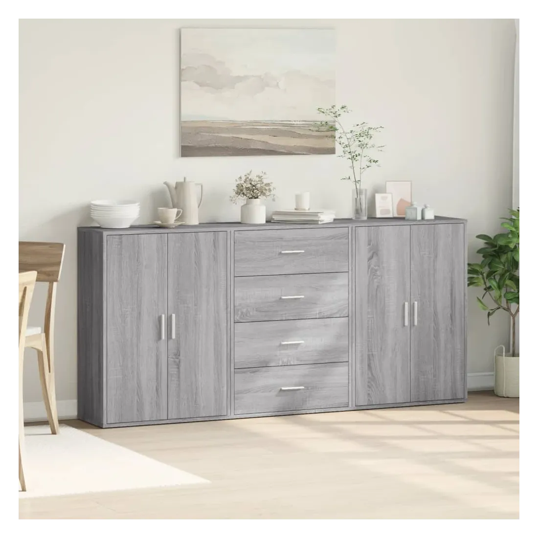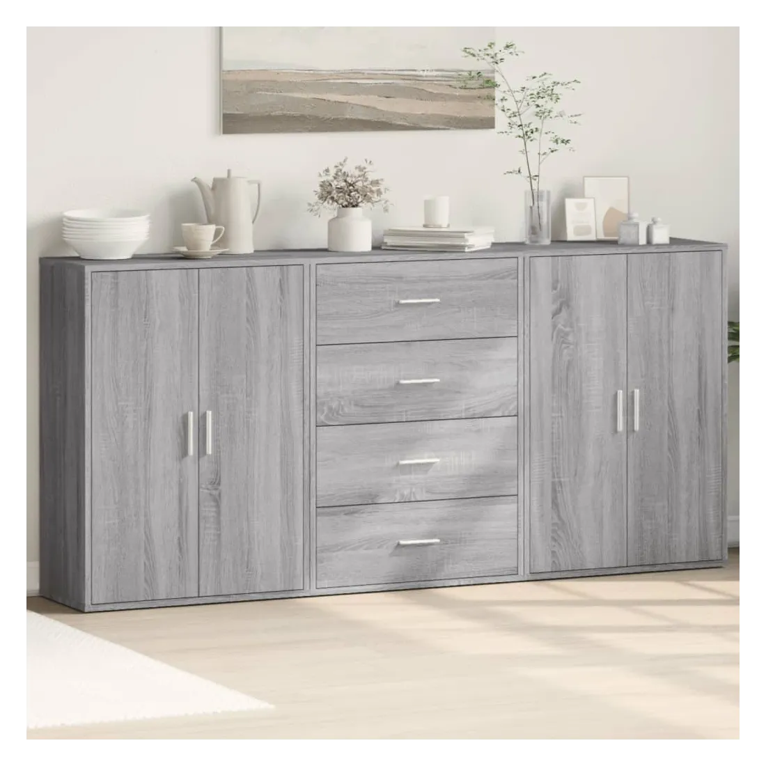 Ces buffets robustes sont conçus pour être un point de mire de votre pièce avec un design tendance mais pratique. Matériau durable : le bois d'ingénierie est d'une qualité exceptionnelle avec une surface lisse et présente également résistance, stabilité et résistance à l'humidité. Fabriquée en bois d'ingénierie, le meuble de rangement est facile à nettoyer avec un chiffon humide.Grand espace de rangement : ce buffet offre un espace de rangement pratique pour garder vos magazines, livres, télécommandes et autres petits objets bien organisés et à portée de main.Large application : le dessus de ce buffet offre plus d'espace pour placer des objets, adapté aux téléphones portables, livres, lampes, etc. Attention :Pour éviter qu'il ne bascule, ce produit doit être utilisé avec le dispositif de fixation murale (non fourni).
