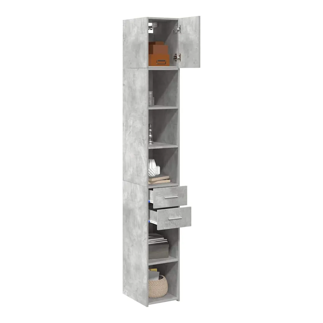 Cette armoire de rangement mince comprend deux armoires de tailles différentes, offrant un espace de rangement supplémentaire pour votre maison. Matériau stable et durable : le bois d'ingénierie est un matériau durable et stable dont la surface lisse résiste à l'humidité, au déformation et au fendillement, ce qui en fait un choix fiable pour une grande variété de projets.Grand espace de rangement : cette armoire de rangement est conçue avec plusieurs compartiments, offrant un grand espace de rangement pour les livres, les objets de collection, les décorations ou d’autres objets que vous devez ranger.Deux méthodes d’installation de la porte : vous pouvez installer la porte au côté droit ou gauche en fonction de vos besoins spécifiques.Économie d’espace : cette unité de rangement haute utilise efficacement l’espace vertical pour maximiser la capacité de stockage, ce qui en fait un meuble idéal pour les petits espaces ou les espaces limités.Large application : cette armoire de rangement polyvalente est un supplément fonctionnel pour plusieurs espaces, y compris la salle de bain, le salon, la chambre à coucher, la cuisine, la buanderie, le bureau et le garage. Attention :Pour éviter qu'il ne bascule, ce produit doit être utilisé avec le dispositif de fixation murale fourni. Bon à savoir :Les vis et les chevilles pour l'intérieur du mur ne sont pas incluses. Nous vous conseillons de trouver et d'utiliser des vis et des chevilles adaptées spécifiquement à vos murs. Si vous n'êtes pas sûr, vous pouvez consulter un professionnel. Veuillez lire et suivre chaque étape des instructions.