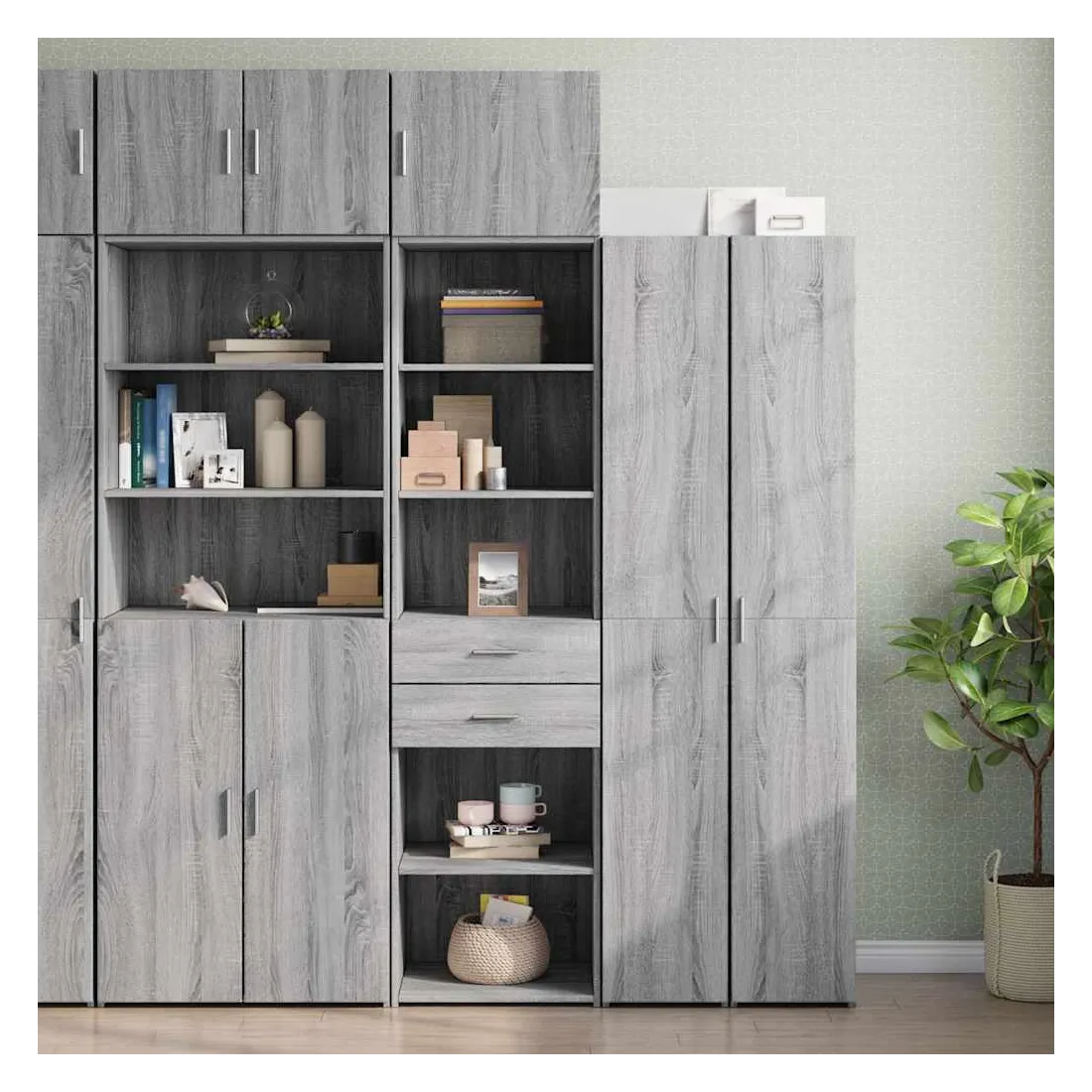 vidaXLCette armoire de rangement mince comprend deux armoires de tailles différentes, offrant un espace de rangement supplémentaire pour votre maison. Matériau stable et durable : le bois d'ingénierie est un matériau durable et stable dont la surface lisse résiste à l'humidité, au déformation et au fendillement, ce qui en fait un choix fiable pour une grande variété de projets.Grand espace de rangement : cette armoire de rangement est conçue avec plusieurs compartiments, offrant un grand espace de rangement pour les livres, les objets de collection, les décorations ou d’autres objets que vous devez ranger.Deux méthodes d’installation de la porte : vous pouvez installer la porte au côté droit ou gauche en fonction de vos besoins spécifiques.Économie d’espace : cette unité de rangement haute utilise efficacement l’espace vertical pour maximiser la capacité de stockage, ce qui en fait un meuble idéal pour les petits espaces ou les espaces limités.Large application : cette armoire de rangement polyvalente est un supplément fonctionnel pour plusieurs espaces, y compris la salle de bain, le salon, la chambre à coucher, la cuisine, la buanderie, le bureau et le garage. Attention :Pour éviter qu'il ne bascule, ce produit doit être utilisé avec le dispositif de fixation murale fourni. Bon à savoir :Les vis et les chevilles pour l'intérieur du mur ne sont pas incluses. Nous vous conseillons de trouver et d'utiliser des vis et des chevilles adaptées spécifiquement à vos murs. Si vous n'êtes pas sûr, vous pouvez consulter un professionnel. Veuillez lire et suivre chaque étape des instructions.