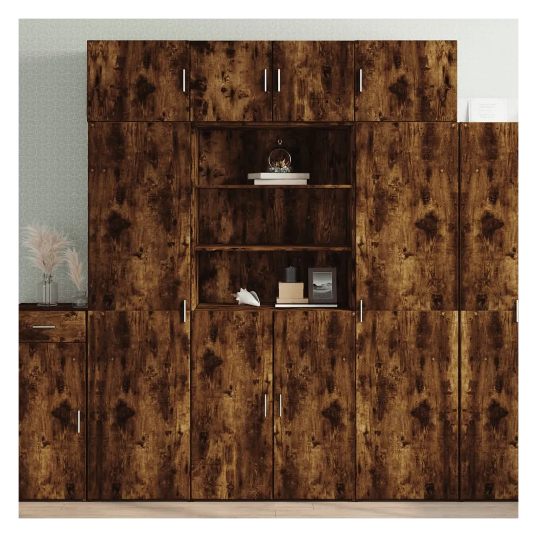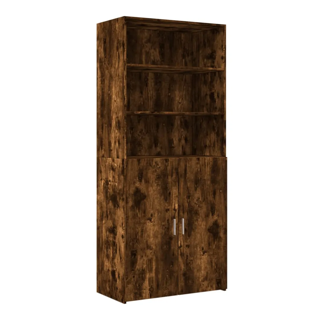 Buffet haut chêne fumé 80x42,5x185 cm bois d'ingénierie