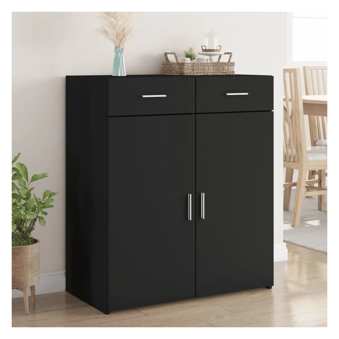 Ce buffet classique est destiné à être un supplément décoratif et pratique à votre maison. Matériau durable : le bois d'ingénierie est d'une qualité exceptionnelle avec une surface lisse et se caractérise également par sa solidité, sa stabilité et sa résistance à l'humidité.Grand espace de rangement : ce buffet avec 2 tiroirs offre un grand espace de rangement pour garder vos différents articles essentiels quotidiens bien organisés et facilement accessibles. Facile à nettoyer : l'armoire est facile à nettoyer à l'aide d'un chiffon humide et nécessite peu d'entretien.Portes pratiques : gardez votre espace sans encombrement en cachant vos articles essentiels derrière les portes de l'armoire de rangement.Attention :Pour éviter qu'il ne bascule, ce produit doit être utilisé avec le dispositif de fixation murale fourni.
