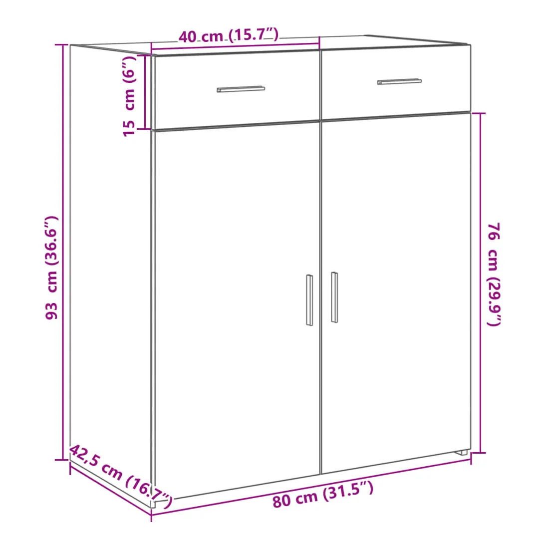 - 80 x 42.5 x 93 cm