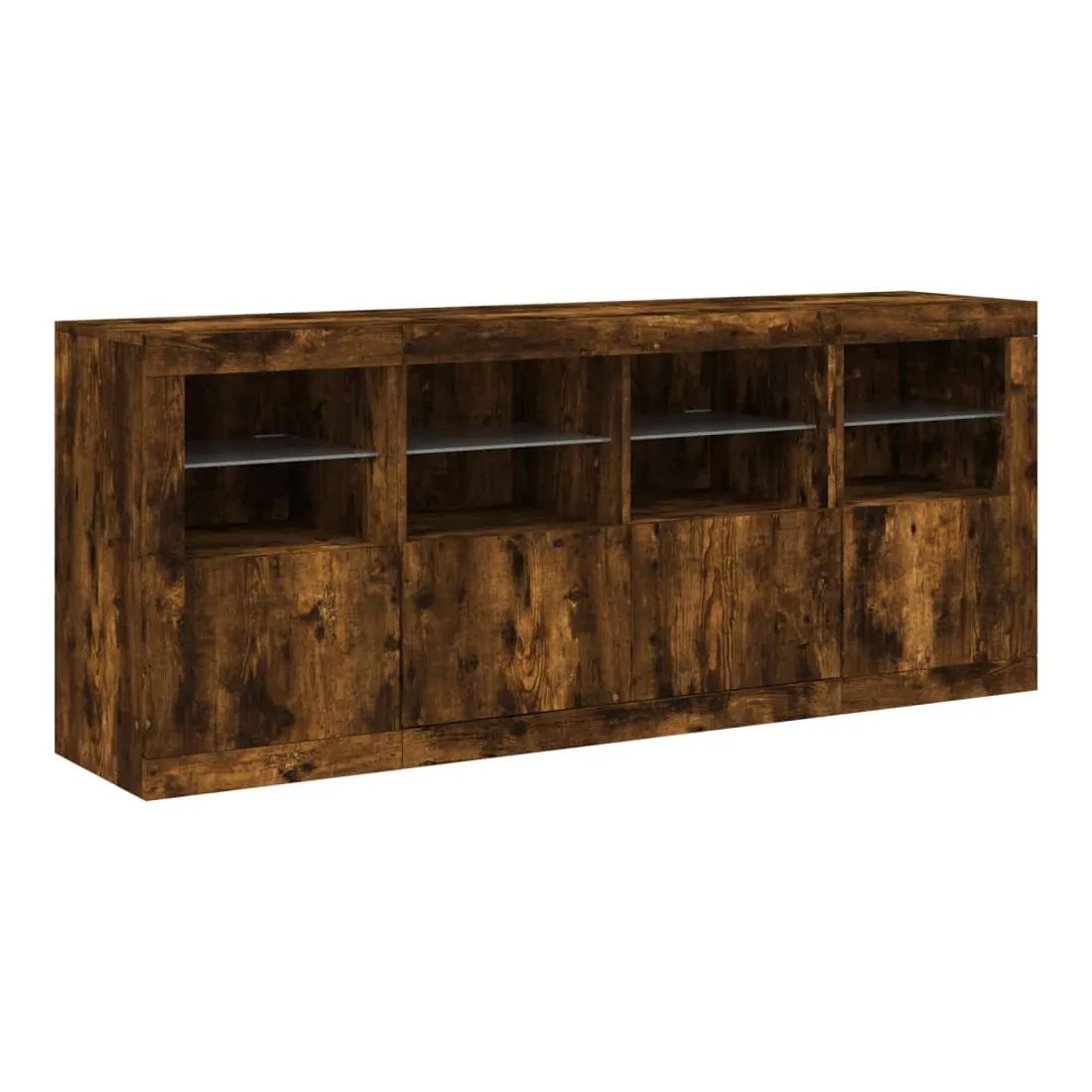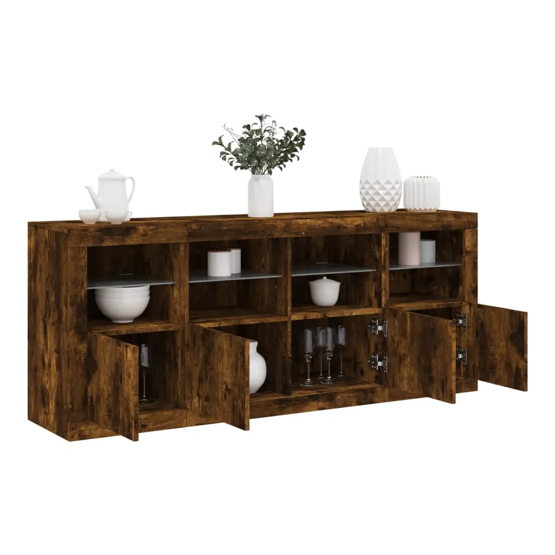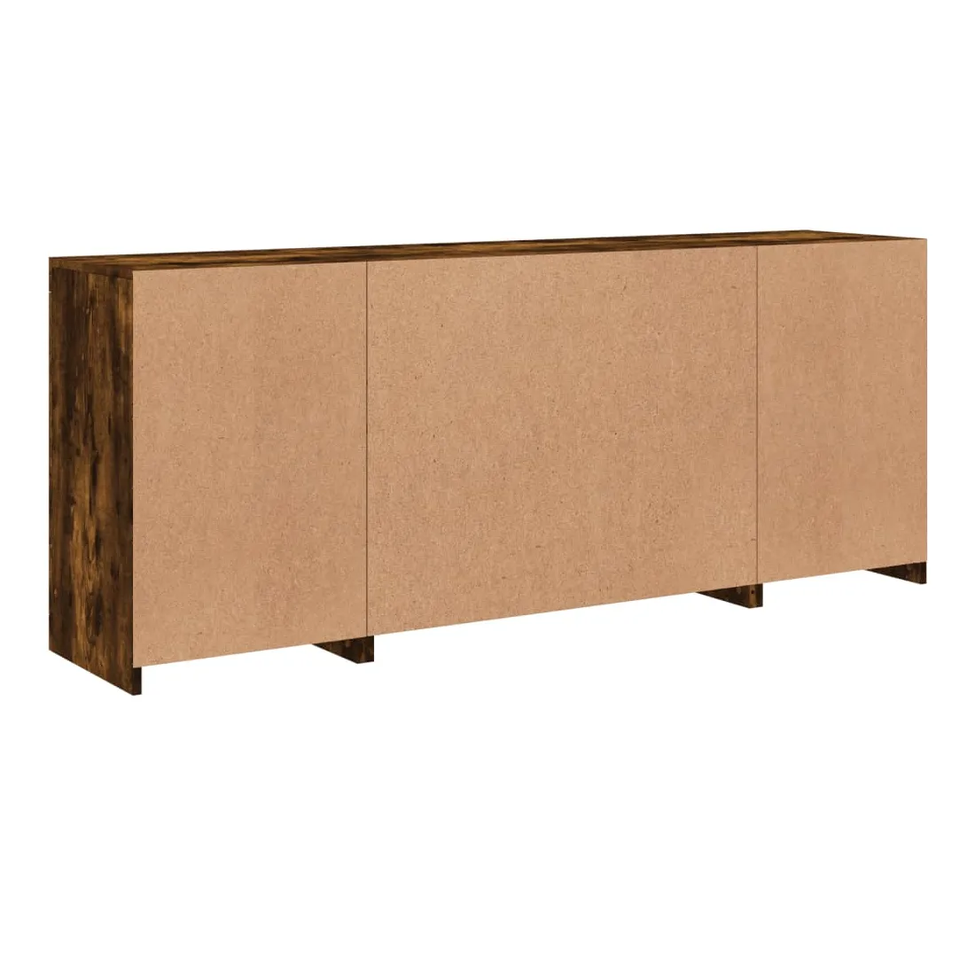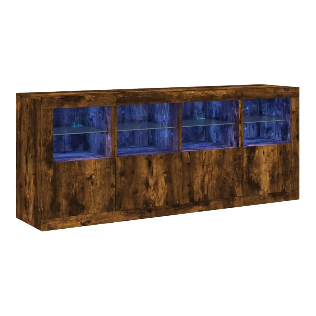 Décorez votre pièce avec ce buffet moderne avec éclairage LED, il s'harmonise facilement avec les meubles de tout style de votre maison. Matériau durable : le bois d'ingénierie est d'une qualité exceptionnelle avec une surface lisse et présente également résistance, stabilité et résistance à l'humidité.Lumières LED RVB : le buffet est équipé de lumières LED RVB vibrantes. Avec divers menus personnalisables, vous pouvez changer sans effort la couleur des lumières et même les régler automatiquement. Ces lumières LED renforcent non seulement l'aspect contemporain du buffet, mais aussi son attrait pour la mode.Grand espace de rangement : l'armoire de rangement offre beaucoup d'espace pour garder vos objets du quotidien bien rangés et facilement accessibles.Fonction d'exposition : la partie supérieure robuste de l'armoire d'entrée est idéale pour exposer des objets décoratifs, des cadres photo ou des plantes en pot.Porte pratiques : gardez vos essentiels à l'abri de la poussière en les cachant derrière les portes de l'armoire latérale. Bon à savoir :Ce produit est doté d'un connecteur USB qui nécessite une source d'alimentation USB de 5V certifiée (non incluse). Attention :Pour éviter qu'il ne soit renversé, ce produit doit être utilisé avec le dispositif de fixation au mur fourni.