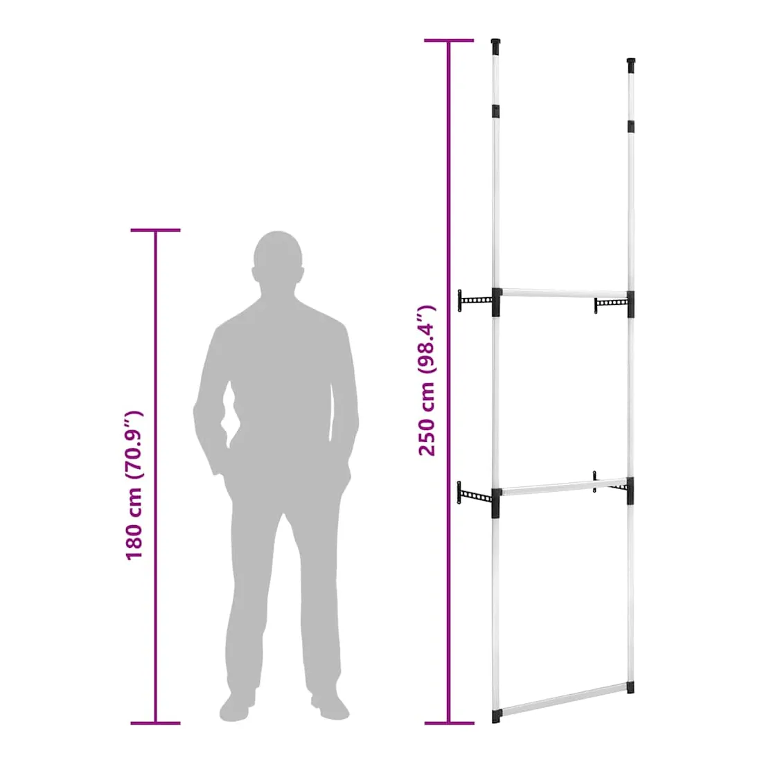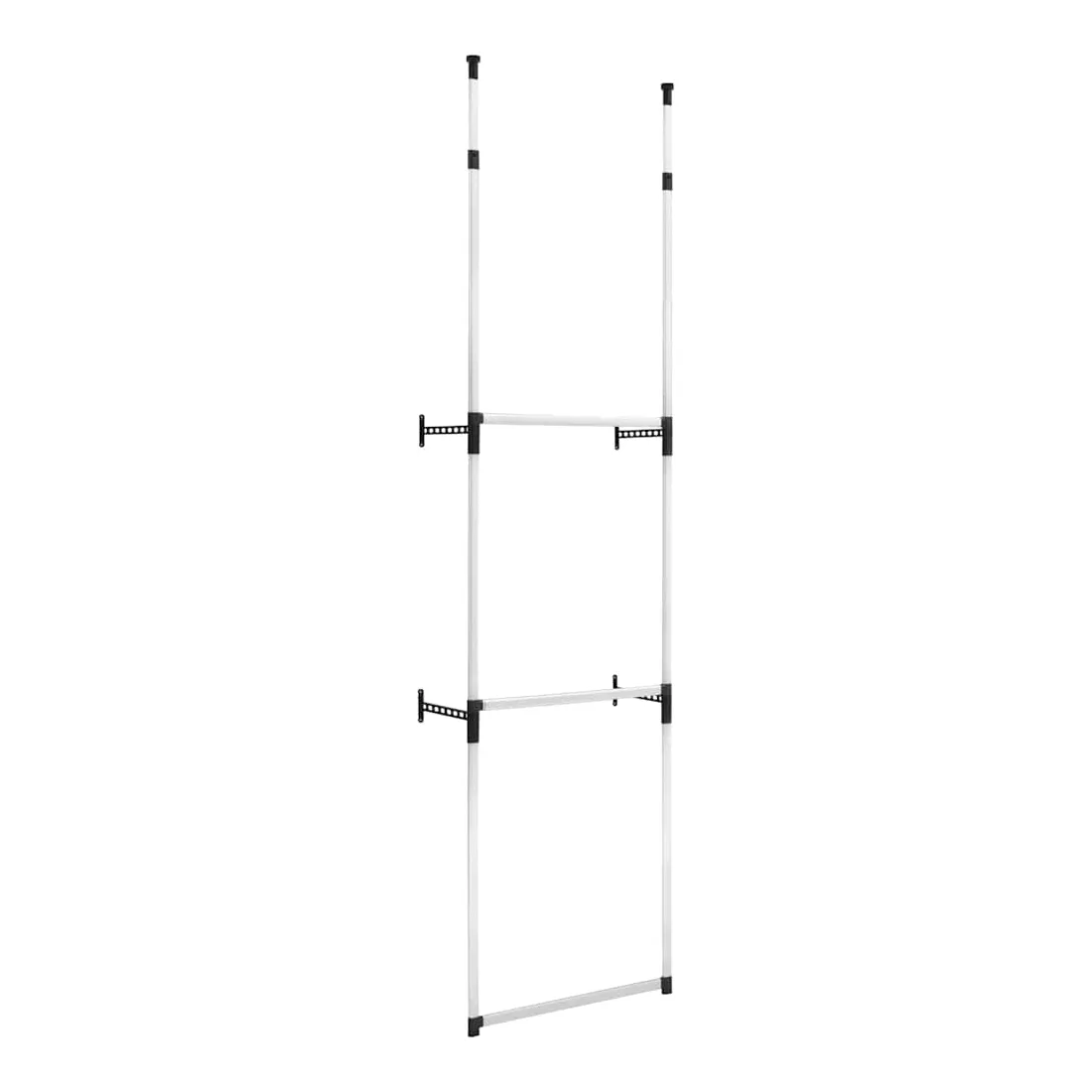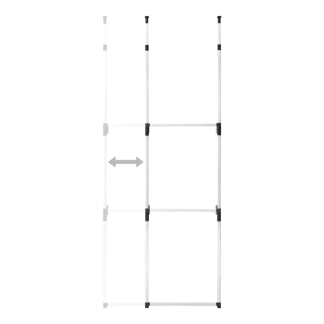 Notre portemanteau télescopique présente une conception simple pour économiser de l'espace dans votre chambre à cocher et dans toute autre pièce. Le système de garde-robe télescopique est en aluminium, ce qui le rend fort et robuste. Ce support de rangement peut être adaptable à différents aménagements spatiaux, grâce à son système télescopique et à la hauteur et à la largeur réglables. Il offre un moyen unique et ingénieux d'organiser votre garde-robe. Organisez vos vêtements et gardez votre pièce propre avec notre système d'organisation de garde-robe télescopique !