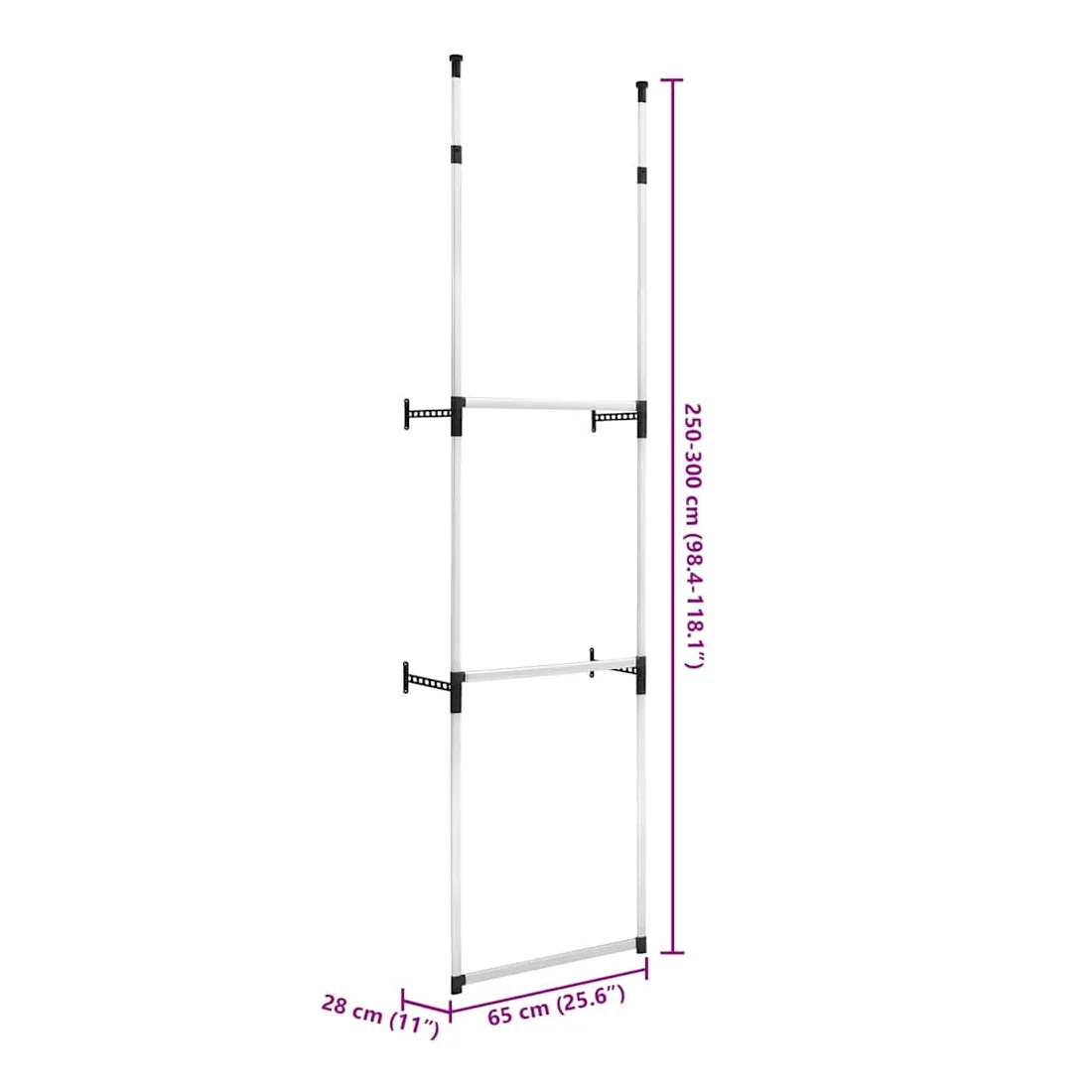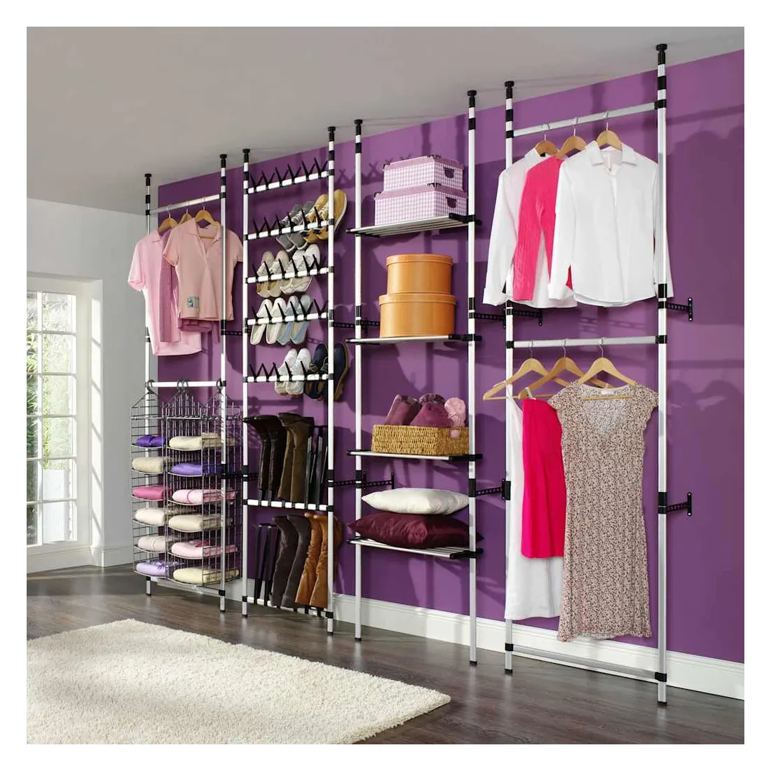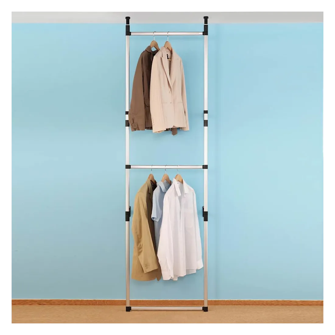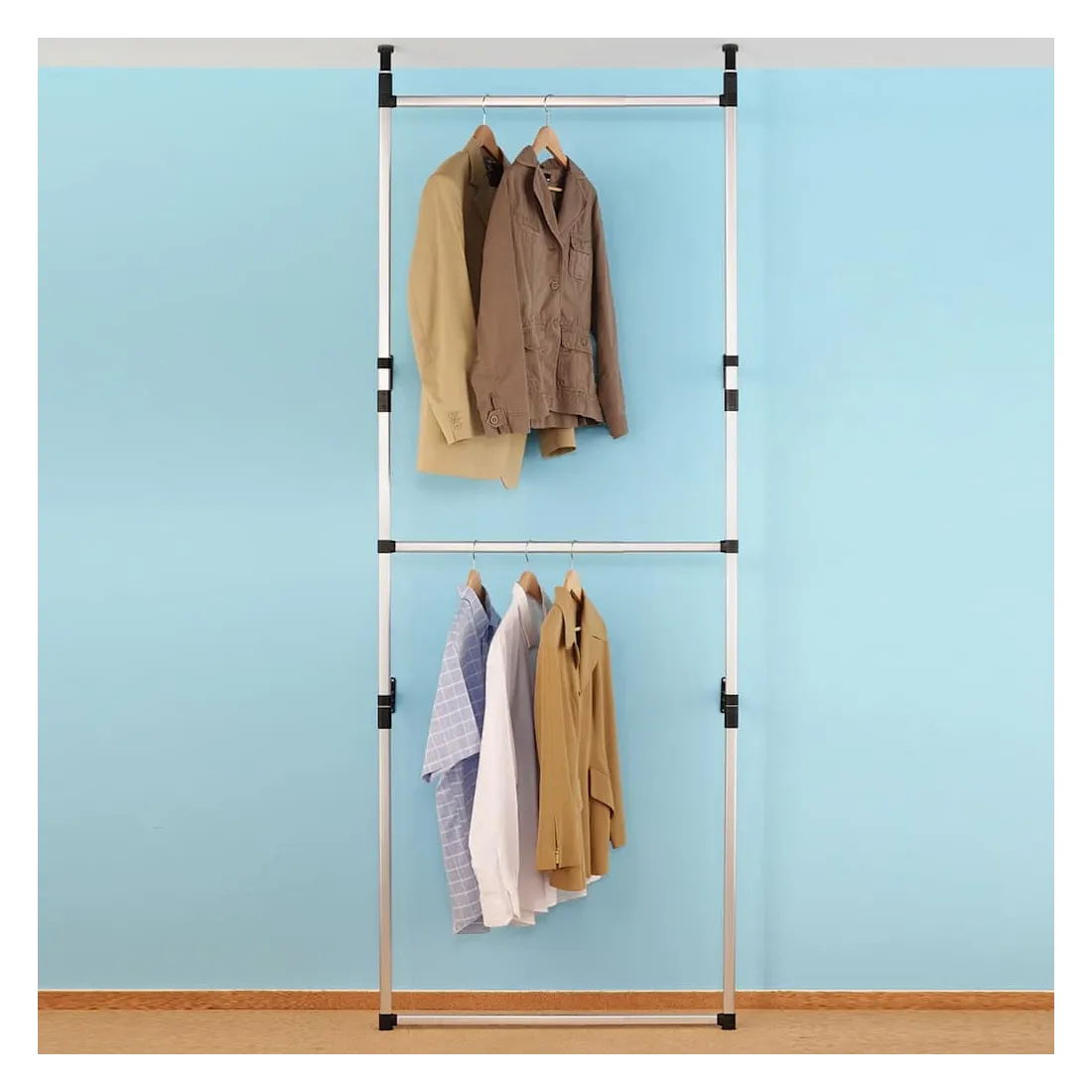 Notre portemanteau télescopique présente une conception simple pour économiser de l'espace dans votre chambre à cocher et dans toute autre pièce. Le système de garde-robe télescopique est en aluminium, ce qui le rend fort et robuste. Ce support de rangement peut être adaptable à différents aménagements spatiaux, grâce à son système télescopique et à la hauteur et à la largeur réglables. Il offre un moyen unique et ingénieux d'organiser votre garde-robe. Organisez vos vêtements et gardez votre pièce propre avec notre système d'organisation de garde-robe télescopique !
