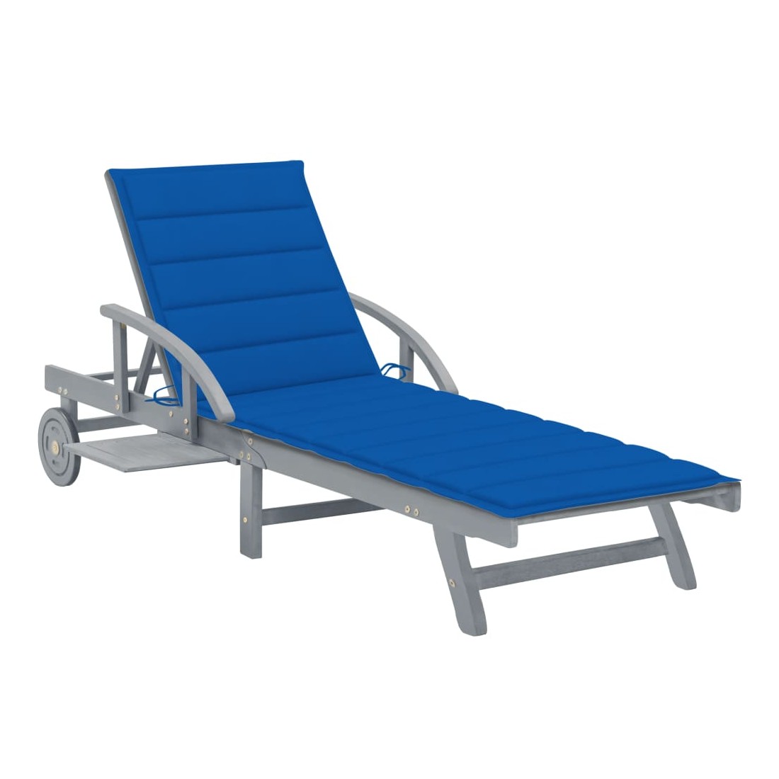 Détendez-vous et reposez-vous dans votre jardin ou patio sur cette confortable chaise longue en bois ! Vous pouvez passer un après-midi de détente dans votre propre espace extérieur. Elle est parfaite pour une piscine, balcon, jardin, etc. Cette chaise longue d'extérieur est fabriquée en bois d’acacia massif avec une finition de couleur grise, ce qui la rend robuste et stable. Le dossier et le repose-pied sont réglables, et vous pouvez verrouiller la chaise longue dans la position souhaitée. Cette chaise longue de jardin peut être facilement déplacée autour de la maison avec 2 roues équipées. Le transat dispose d’une table coulissante pratique, pour placer votre téléphone, lunettes de soleil, boisson et autres petits articles. Le coussin ajoute un confort supplémentaire pendant que vou