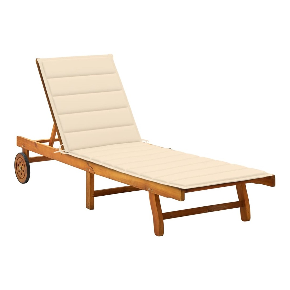 Détendez-vous et reposez-vous dans votre jardin ou patio sur cette confortable chaise longue en bois ! Vous pouvez passer un après-midi de détente dans votre propre espace extérieur. Elle est parfaite pour une piscine, balcon, jardin, etc. Cette chaise longue d'extérieur est fabriquée en bois d’acacia massif, ce qui la rend robuste et stable. Le dossier et le repose-pied sont réglables, et vous pouvez verrouiller la chaise longue dans la position souhaitée. Cette chaise longue de jardin peut être facilement déplacée autour de la maison grâce aux 2 roues. Le transat dispose d’une table coulissante pratique, pour placer votre téléphone, lunettes de soleil, boisson et autres petits articles. Le coussin ajoute du confort supplémentaire pendant que vous vous prélassez. Chaque coussin comprend deux jeux de cordes pour que vous puissiez le fixer solidement sur la chaise longue.