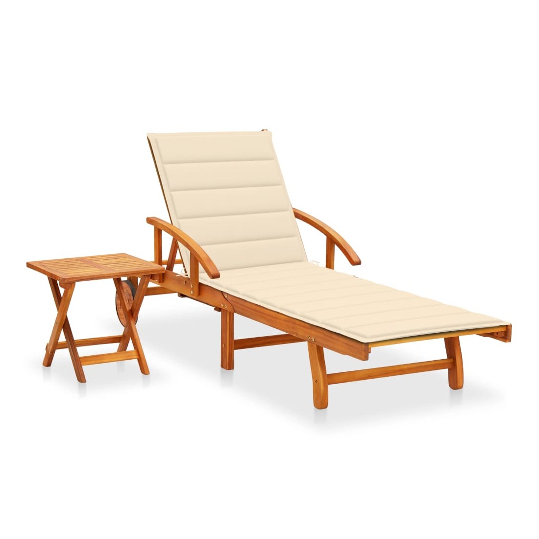 Chaise longue de jardin avec table et coussin Bois d'acacia