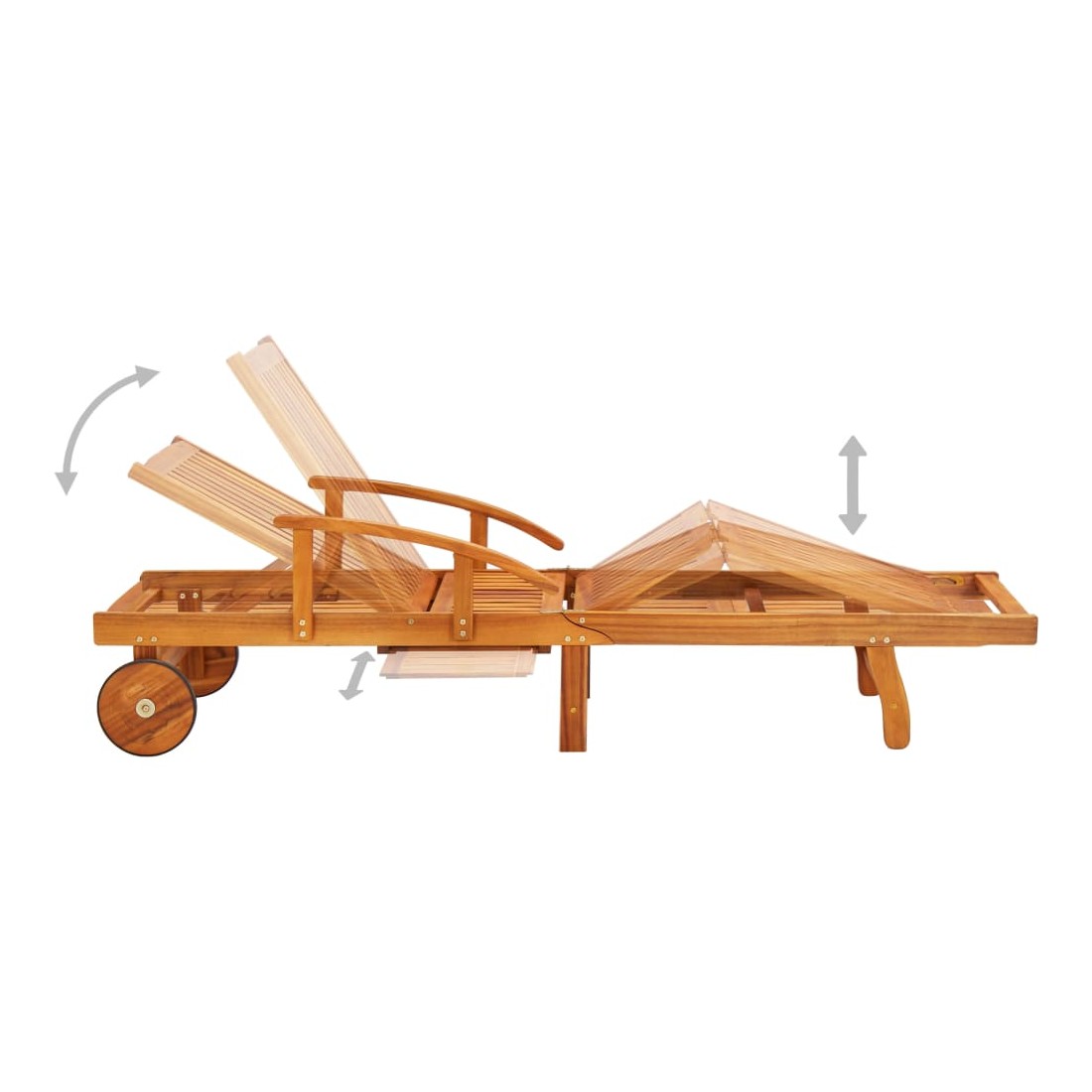Avec cette chaise longue en bois d’acacia massif à la mode, vous trouverez toujours un endroit confortable pour vous détendre sur votre terrasse ou dans votre jardin. Cette chaise longue de jardin et la table sont fabriquées en bois d’acacia massif, ce qui les rend robustes et stables. La chaise longue de jardin peut être facilement déplacée autour de la maison grâce aux 2 roues. Le dossier et le repose-pied sont réglables, et vous pouvez également verrouiller la chaise longue en bois dans la position souhaitée. La table coulissante et la table latérale pliable vous permettent de placer votre téléphone, lunettes de soleil, boisson et autres petits articles. Le coussin ajoute un confort supplémentaire tout en vous prélassant. Chaque coussin comprend deux jeux de cordes pour le fixer fer