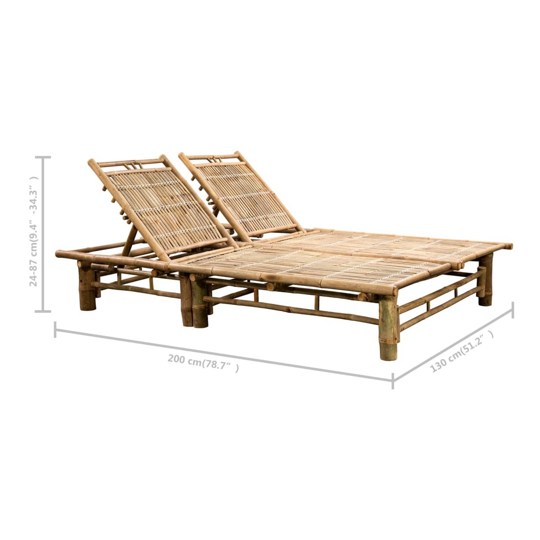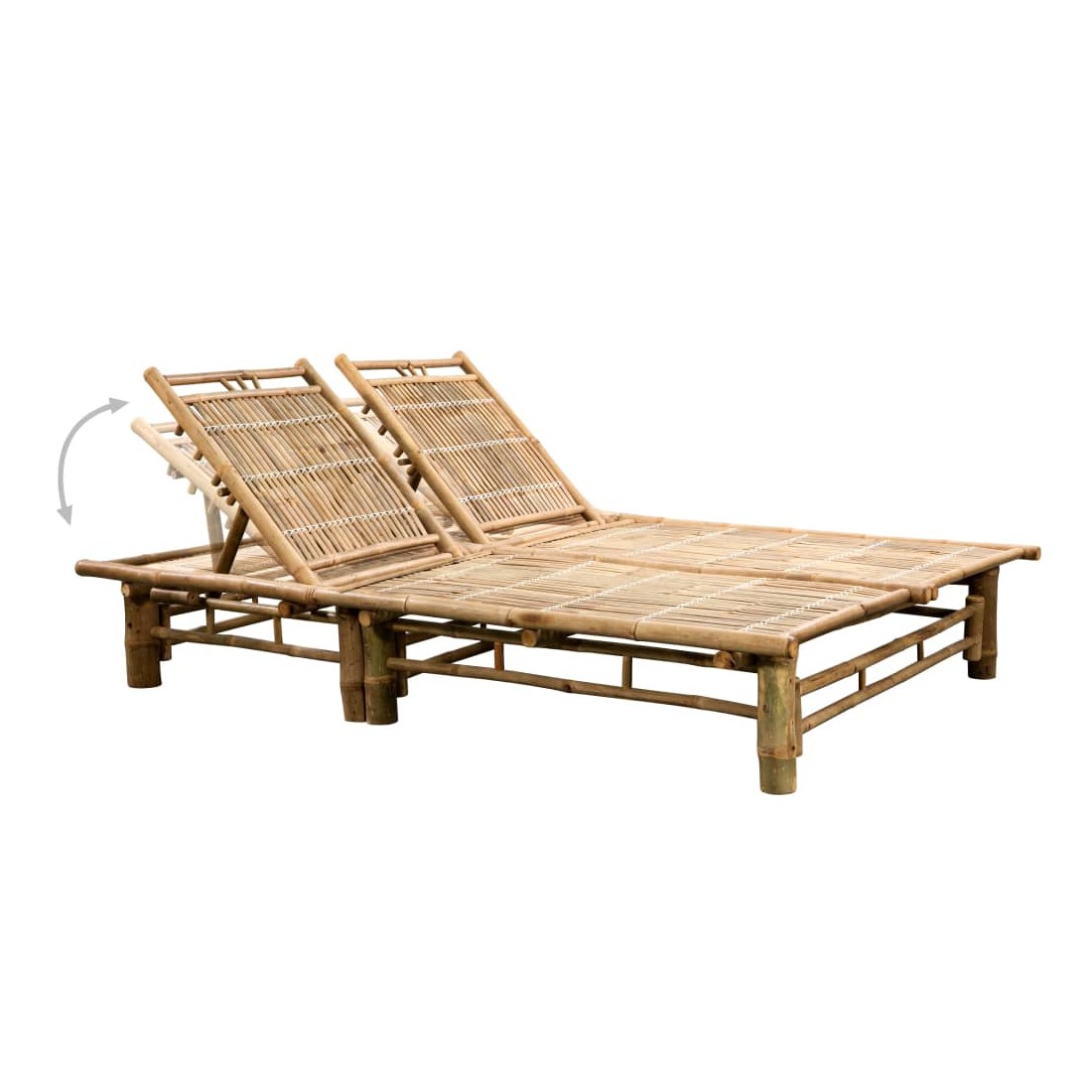 Cette chaise longue confortable pour 2 personnes est idéale pour vous détendre, lire ou simplement vous bronzer dans le jardin. Cette chaise longue est faite de bambou résistant aux intempéries et durable qui ajoute une touche tropicale à votre espace de vie extérieur. Ses dossiers séparés sont réglables en 3 positions d'inclinaison, vous pouvez donc toujours trouver la position la plus confortable. Les coussins ajoutent un confort supplémentaire pendant que vous vous prélassez. Chaque coussin comporte des ensembles de cordes afin que vous puissiez le fixer fermement sur la chaise longue. Remarque : afin de prolonger la durée de vie des meubles d'extérieur, nous vous recommandons de les protéger avec une housse imperméable.