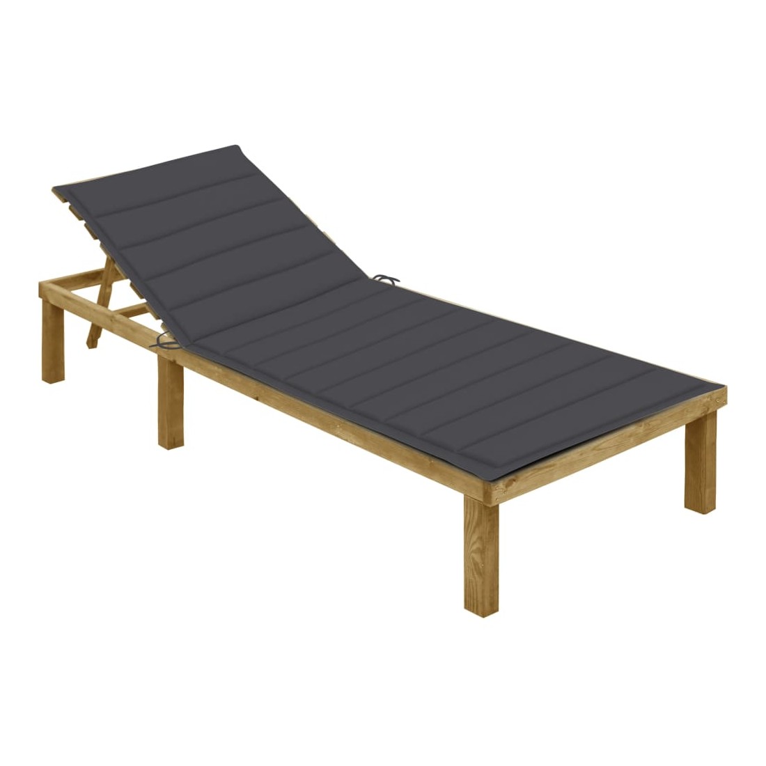 Chaise longue avec coussin anthracite Bois de pin imprégné