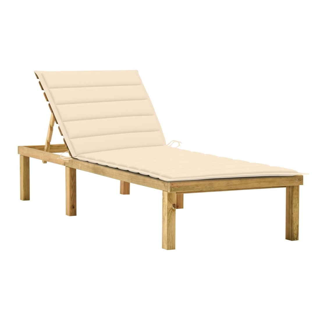 Chaise longue avec coussin crème Bois de pin imprégné