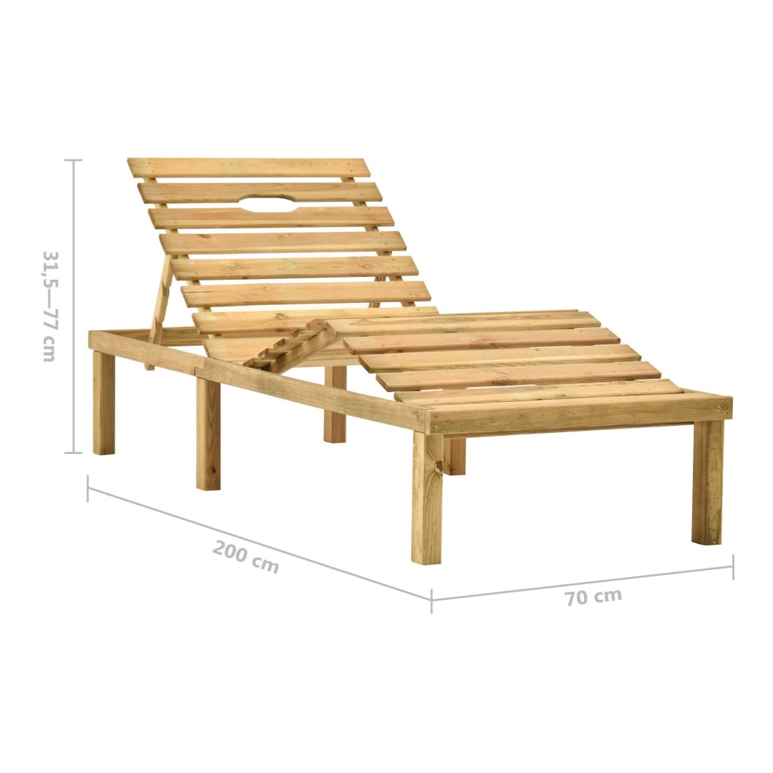 • Dimensions de la chaise longue (étendues) : 200 x 70 x (31,5-77) cm (L x l x H)