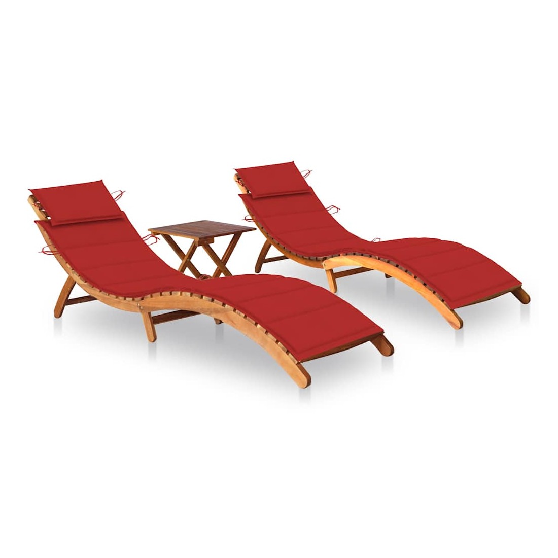 Chaises longues lot de 2 avec table et coussins Acacia solide