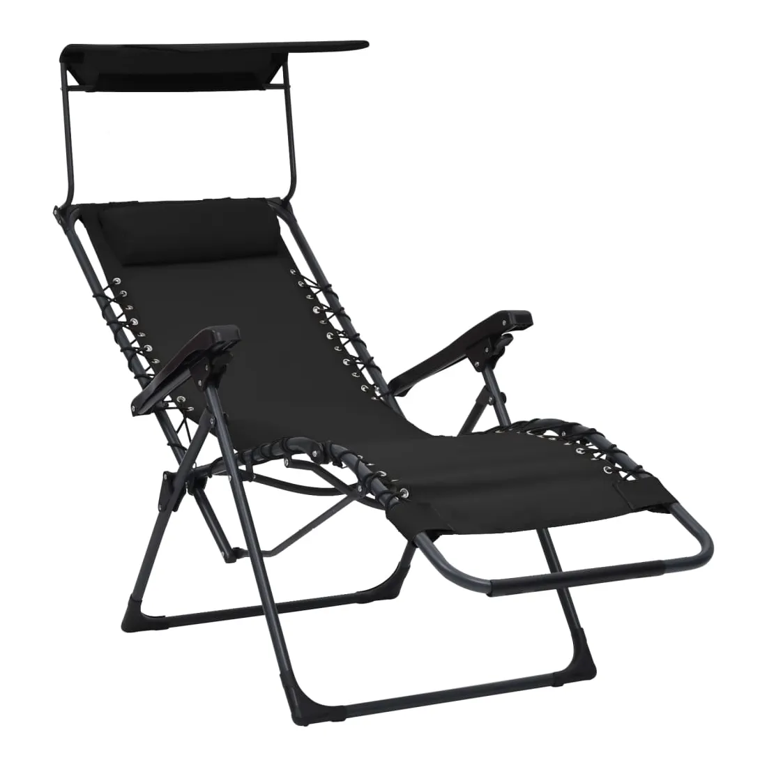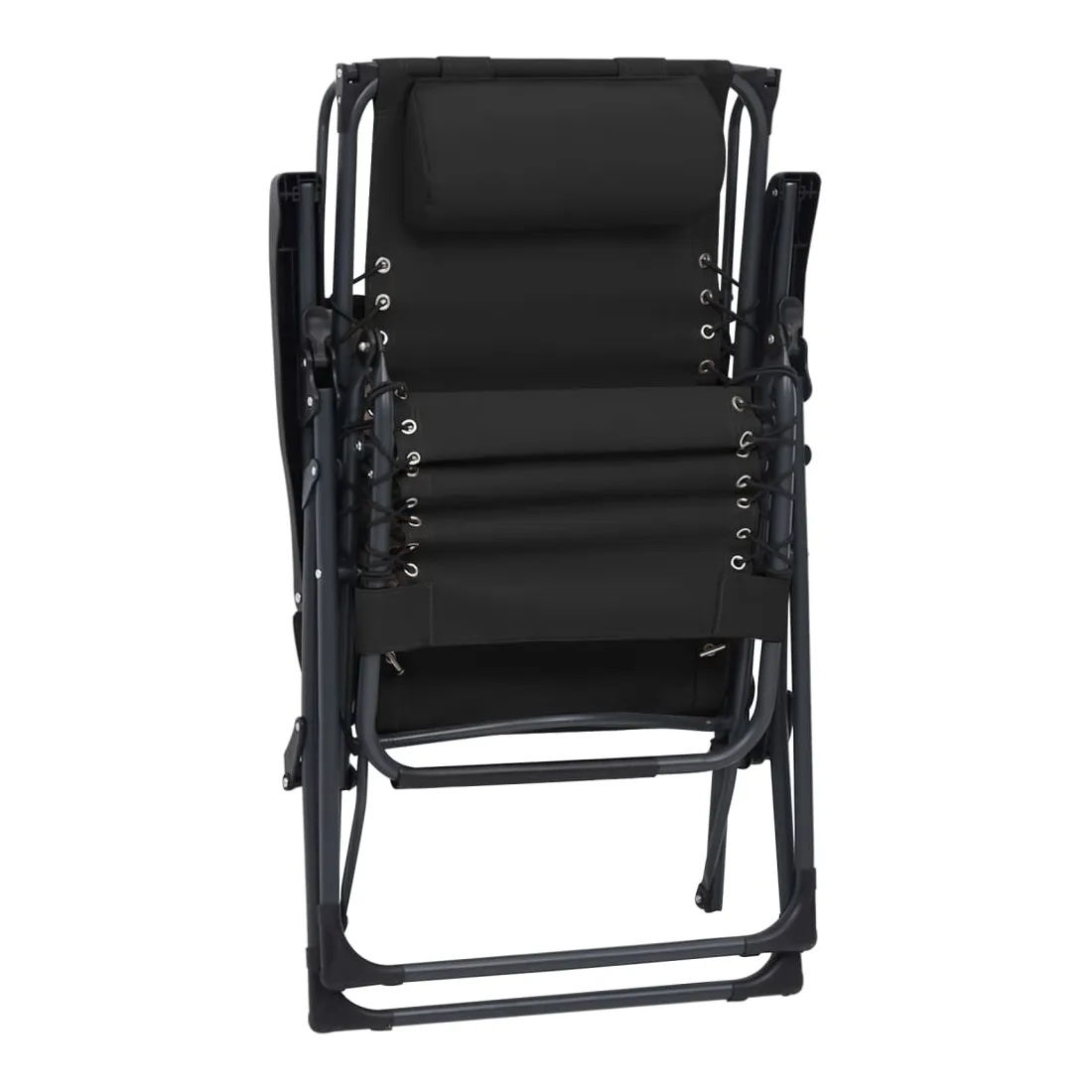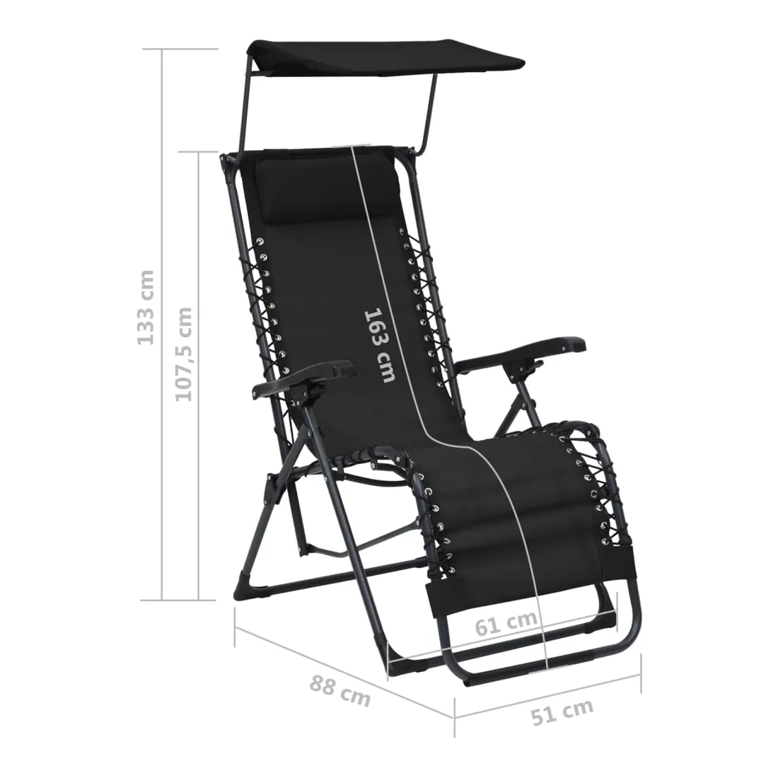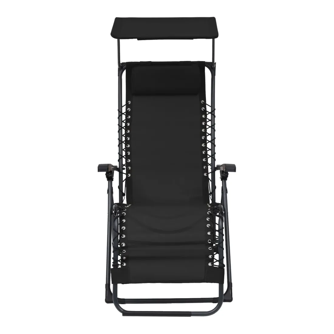 Cette chaise inclinable de terrasse est une combinaison parfaite de style et de fonctionnalité, qui sera un excellent supplément à votre terrasse, jardin, balcon ou tout autre espace intérieur et extérieur. La chaise de jardin a un cadre en acier robuste et un siège et un dossier en textilène facile à nettoyer et résistant aux intempéries pour vous servir pendant de nombreuses années. L'appui-tête rembourré est doux et confortable. Dotée d'un toit, la chaise à gravité offre une ombre fraîche sous le soleil. De plus, comme la chaise d'extérieur est légère, elle peut être facilement déplacée et pliable pour économiser de l'espace lorsqu'elle n'est pas utilisée. Remarque : afin de prolonger la durée de vie des meubles d'extérieur, nous vous recommandons de les protéger avec une housse imperméable.