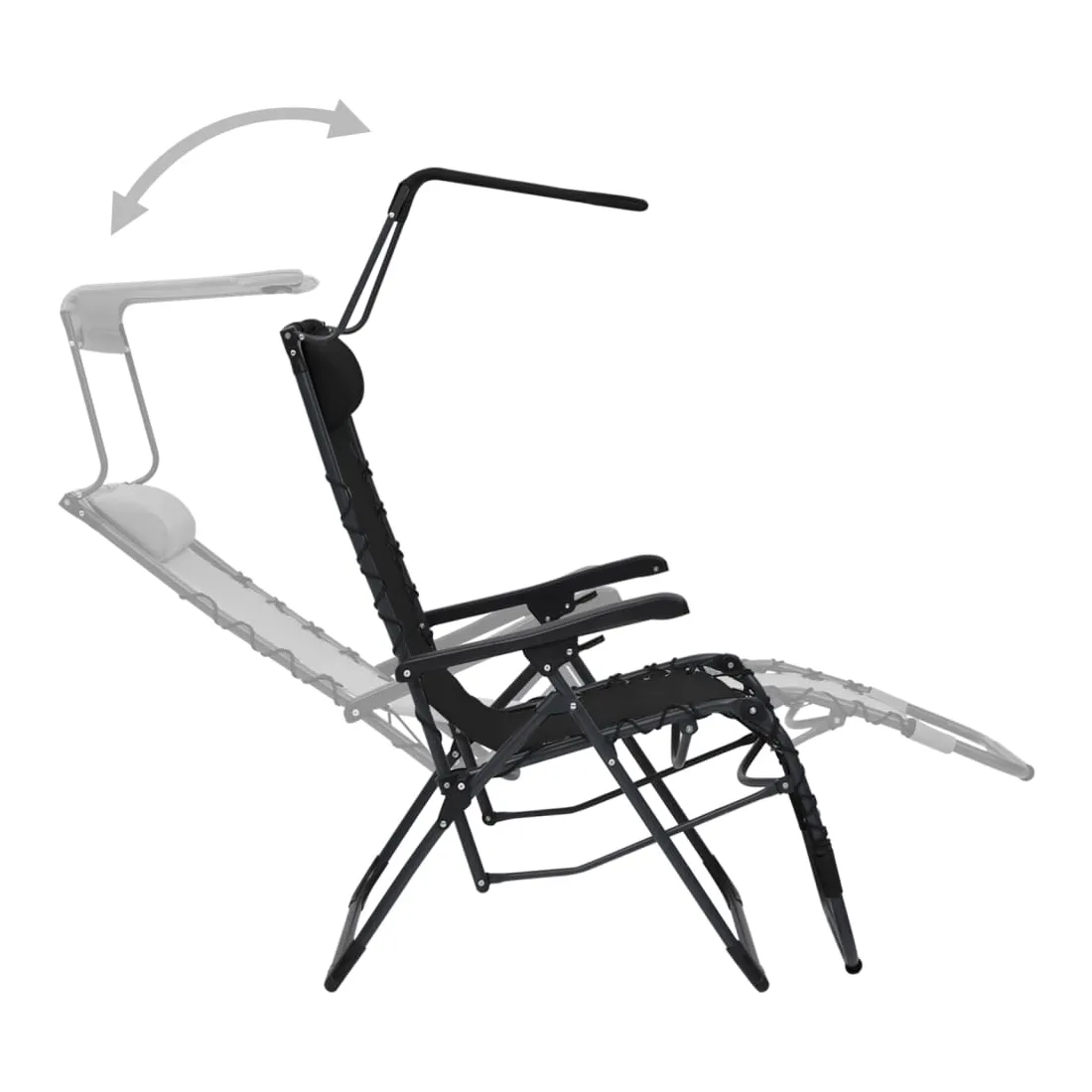 Cette chaise inclinable de terrasse est une combinaison parfaite de style et de fonctionnalité, qui sera un excellent supplément à votre terrasse, jardin, balcon ou tout autre espace intérieur et extérieur. La chaise de jardin a un cadre en acier robuste et un siège et un dossier en textilène facile à nettoyer et résistant aux intempéries pour vous servir pendant de nombreuses années. L'appui-tête rembourré est doux et confortable. Dotée d'un toit, la chaise à gravité offre une ombre fraîche sous le soleil. De plus, comme la chaise d'extérieur est légère, elle peut être facilement déplacée et pliable pour économiser de l'espace lorsqu'elle n'est pas utilisée. Remarque : afin de prolonger la durée de vie des meubles d'extérieur, nous vous recommandons de les protéger avec une housse imp