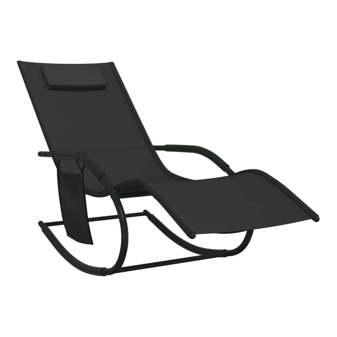 Prenez une pause de votre vie quotidienne trépidante sur cette chaise longue à bascule pratique ! Cette chaise à bascule est un excellent compagnon de loisirs et de vacances pour vous détendre et profiter du beau temps. Pieds à bascule : détendez-vous en vous asseyant confortablement tout en profitant d'un mouvement de bercement doux et apaisant.Cadre robuste : la chaise longue est fabriquée en acier enduit de poudre, ce qui la rend résistante à la rouille et robuste.Design ergonomique : dotée d'une surface de couchage de forme ergonomique et d'un appui-tête amovible, la chaise longue à bascule offre le plus grand confort lorsque vous vous balancez d'avant en arrière.Tissu de qualité : la surface en maille textilène est respirante, assurant une bonne circulation de l'air et empêchant l'accumulation de sueur. Elle est également facile à nettoyer avec un chiffon humide.Poche latérale amovible : avec une poche latérale amovible pratique, vous pouvez garder les téléphones portables, les magazines et autres petits objets à portée de main. Remarque :Afin de prolonger la durée de vie de votre mobilier d'extérieur, nous vous recommandons de le protéger avec une housse imperméable.