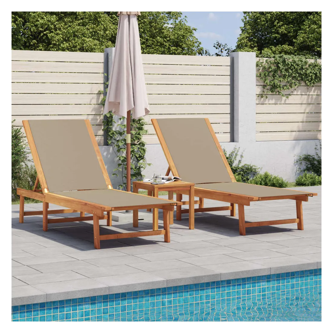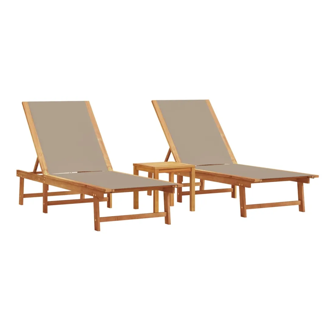 Ces chaises longues classiques avec table d'appoint sont idéales pour prendre un bain de soleil et vous détendre près de la piscine, sur la terrasse ou dans le jardin. Robuste et stable : le bois d'acacia massif est connu pour sa solidité et sa durabilité. Ses couleurs variées et ses grains uniques lui confèrent un aspect attrayant. Sa stabilité et sa résistance aux intempéries en font un matériau idéal pour la fabrication de meubles d'intérieur et d'extérieur.Durable et longue durée de vie : le tissu textilène est apprécié pour sa durabilité, résistance à l'eau et à la décoloration, facilité d'entretien et protection contre les rayons UV et la moisissure, ce qui en fait un choix idéal pour le meuble d'extérieur et les structures d'ombrage.Dossier réglables : ce transat est doté d'un dossier à 5 positions réglables, ce qui vous permet de trouver facilement la position la plus confortable et la plus appropriée pour la détente.Table d'appoint pratique : ce mobilier d'extérieur comprend une table d'appoint, offrant un endroit pratique pour garder vos essentiels à portée de main. Bon à savoir :Pour que vos meubles d'extérieur restent beaux, nous vous recommandons de les protéger avec une housse imperméable.