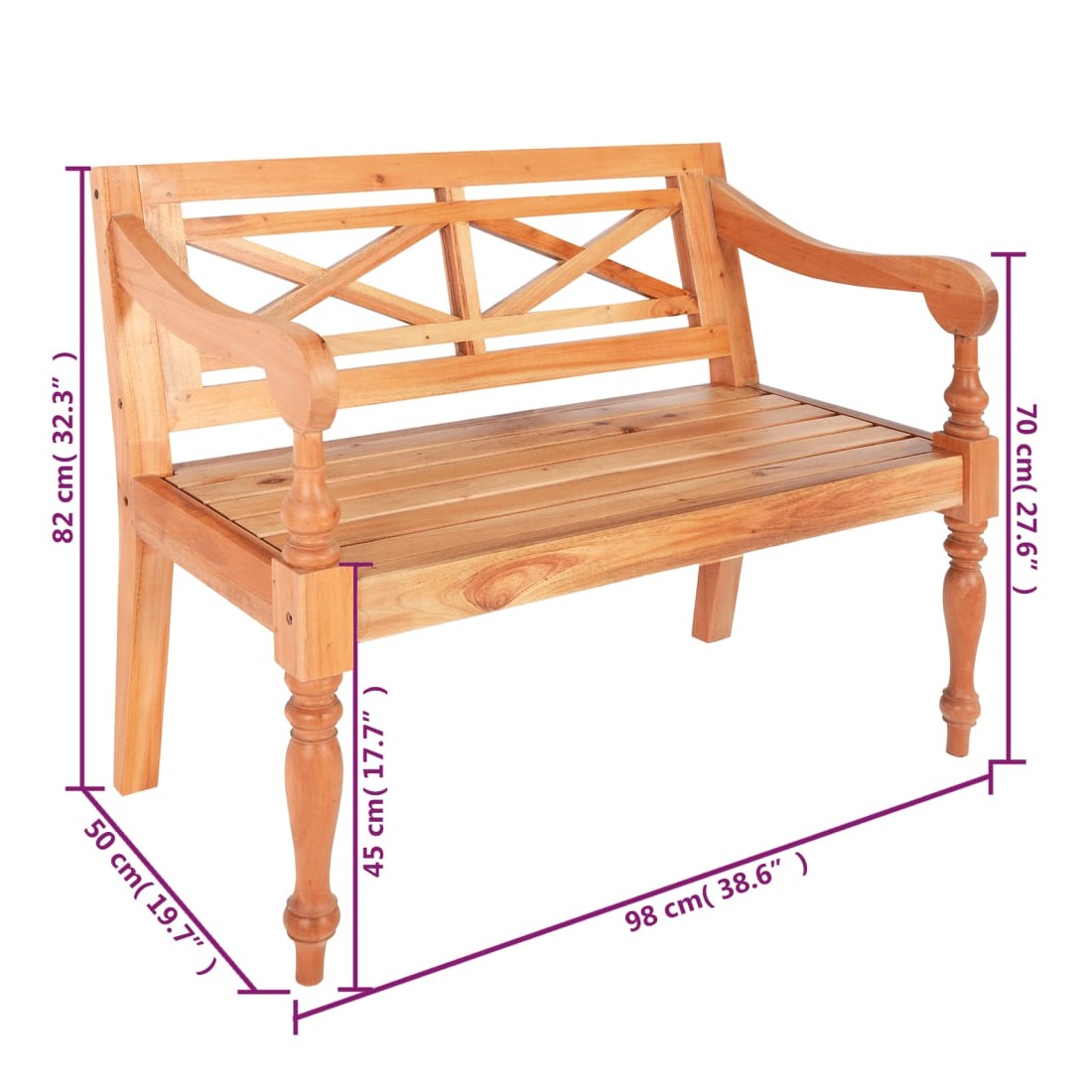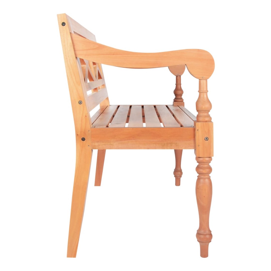 Notre banc Batavia combine parfaitement style et fonctionnalité et ajoutera une touche de classe à votre décoration intérieure. Il fera sensation dans n'importe quel espace de vie intérieur. Le banc de haute qualité avec accoudoirs élégamment incurvés est en bois d'acajou solide, ce qui est très stable et durable. Il est robuste et facile à nettoyer, assurant ainsi une longue durée de vie. Ce banc est facile à assembler.