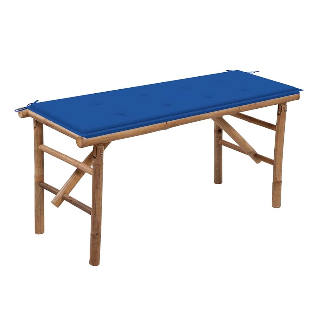 Ce banc classique en bambou sera un excellent supplément à votre jardin ou à tout autre espace extérieur. Le banc d'extérieur est pliable, donc portable, et peut être facilement rangé ou mis en place. Fabriqué en bambou résistant aux intempéries et imperméable, le banc de jardin est durable et stable. Il est également facile à nettoyer avec un chiffon humide. De plus, le coussin inclus offre un confort supplémentaire tout en vous prélassant. Il est fabriqué en 100 % polyester qui a été traité pour le rendre imperméable. Chaque coussin est doté de deux jeux de cordes pour le fixer solidement sur le banc.