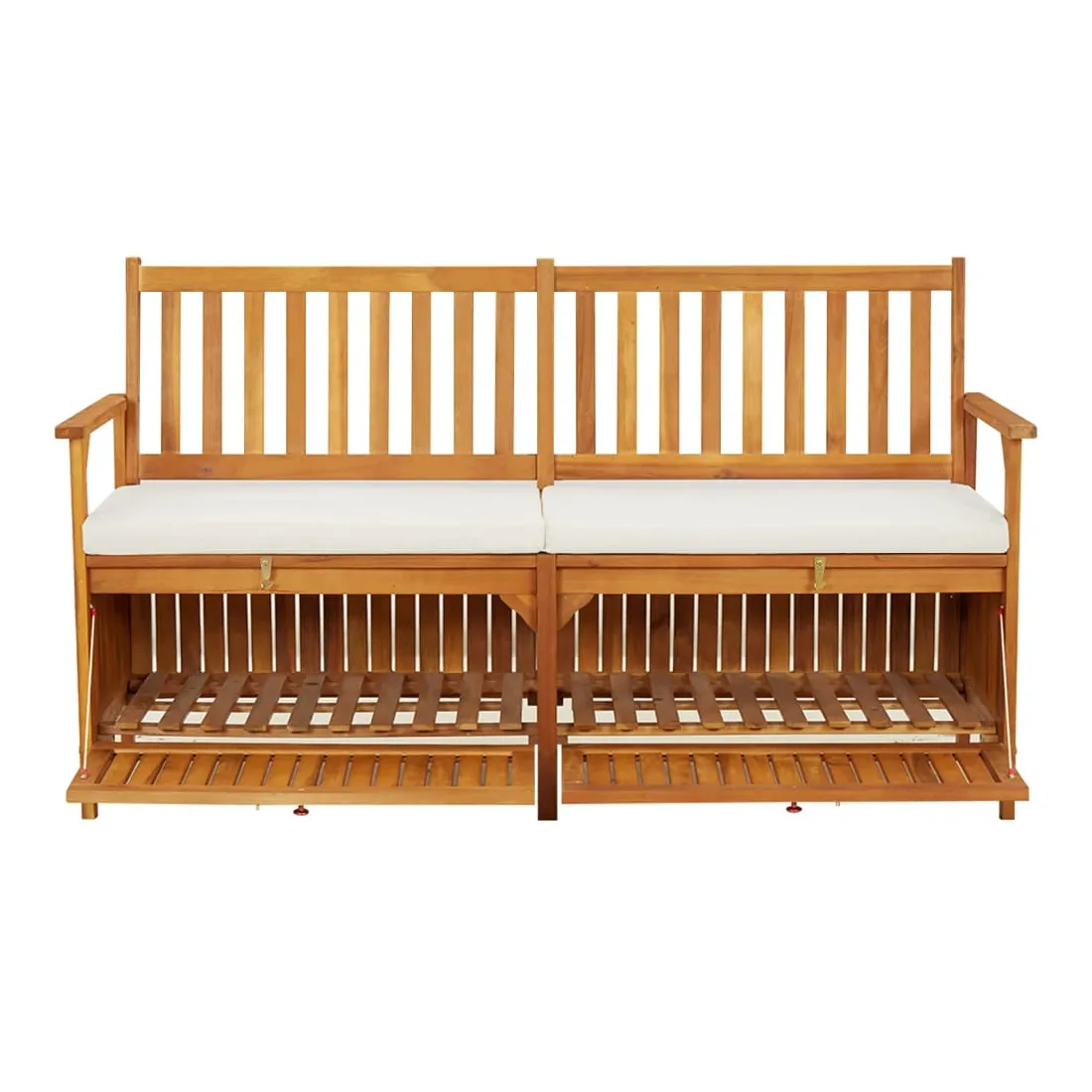 Mettez de l'ordre dans votre décor intérieur et extérieur avec ce banc de rangement polyvalent en bois ! Matériau de première qualité : le bois d'acacia massif est un matériau naturel magnifique. C'est un bois dur tropical, qui est dense, robuste et durable. Assise optimale : le siège bien rembourré ajoute une expérience d'assise supplémentaire. Grand espace de rangement : l'espace de rangement facilite l'organisation des articles. Remarque :Afin de prolonger la durée de vie de votre mobilier d'extérieur, nous vous recommandons de le protéger avec une housse imperméable.