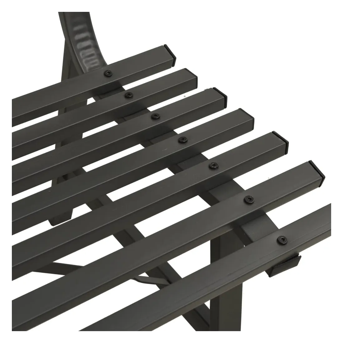 Avec un design élégant mais pratique, ce banc de jardin sublime votre espace de vie extérieur ! Fabriqué en acier enduit de poudre, ce banc de jardin est résistant aux intempéries et très durable. Le dossier à lattes ajoute également une touche élégante à n'importe quel jardin ou patio. Asseyez-vous et profitez de votre temps libre confortablement sur ce banc élégant ! Remarque : afin de prolonger la durée de vie des meubles d'extérieur, nous vous recommandons de les protéger avec une housse imperméable.