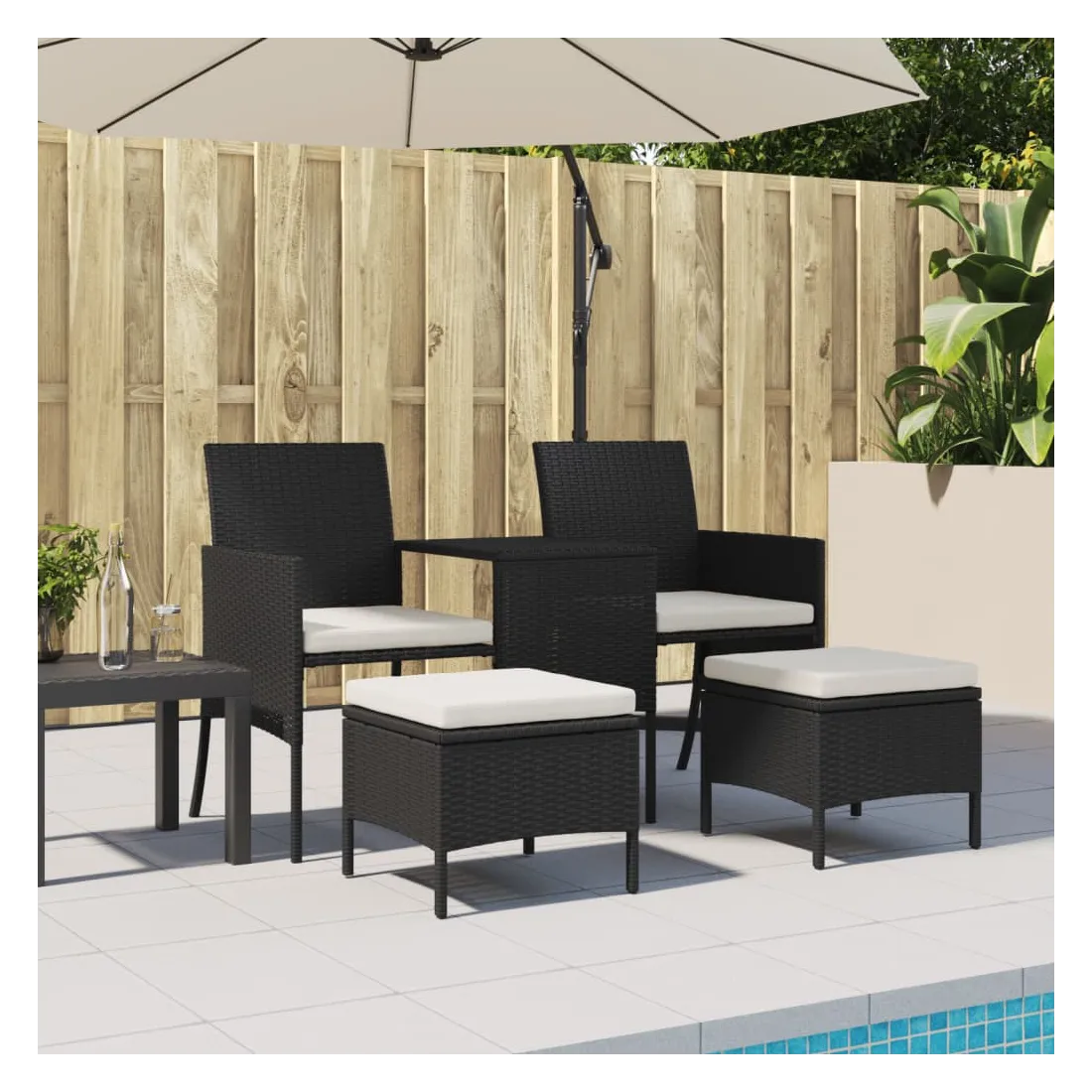 Détendez-vous et profitez de l'extérieur dans ce confortable canapé de jardin ! Matériau durable : la résine tressée, également connue sous le nom de poly rotin, est un matériau synthétique solide et nécessitant peu d'entretien qui ressemble au rotin naturel. Elle est légère, facile à nettoyer et couramment utilisée pour les meubles d'extérieur en raison de sa durabilité et de ses propriétés de résistance aux intempéries.Table centrale pratique : ce mobilier d'extérieur est doté d'une table centrale intégrée, qui permet de ranger vos objets essentiels à portée de main.Pouf polyvalent : le pouf est polyvalent, servant de repose-pieds confortable lorsque vous vous prélassez sur le canapé ou de siège supplémentaire dans votre jardin. Les poufs peuvent être rangés sous les chaises, ce qui permet d'économiser encore plus d'espace.Housse amovible et lavable : ces coussins sont dotés de housses amovibles pour un lavage et un entretien faciles.Cadre robuste et stable : le cadre en acier enduit de poudre assure la solidité et la stabilité du meuble de jardin pour une utilisation quotidienne à l'extérieur. Bon à savoir :Pour que vos meubles d'extérieur restent beaux, nous vous recommandons de les protéger avec une housse imperméable.