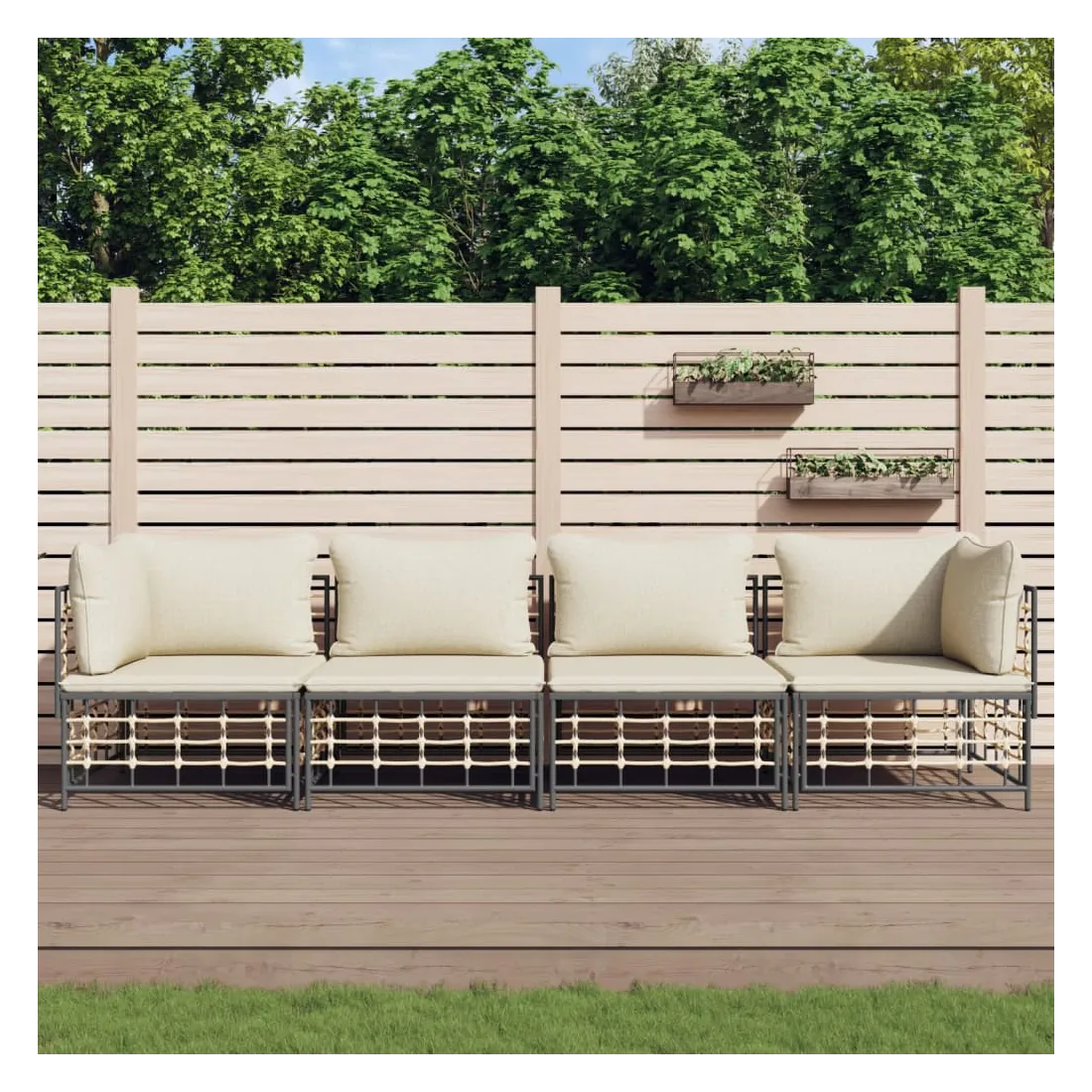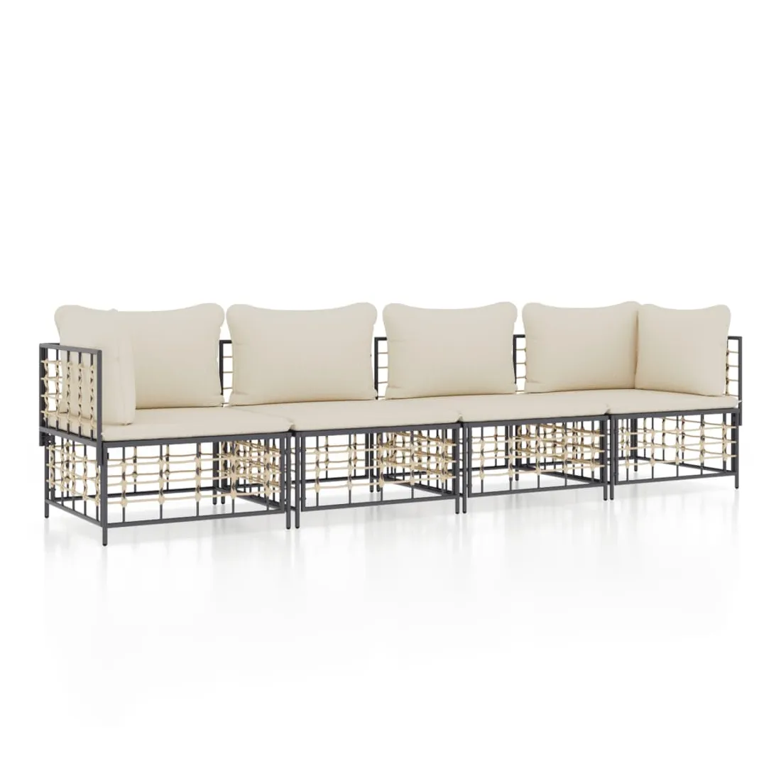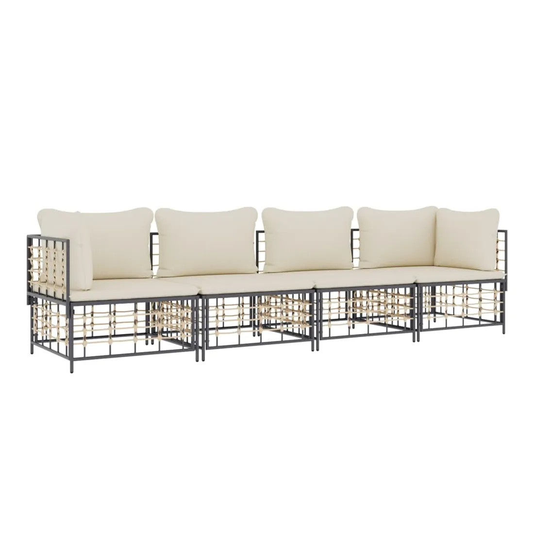 Profitez d'un moment de café confortable dans votre espace extérieur avec cet ensemble de salon de jardin ! C'est un complément parfait à votre jardin et à votre terrasse, créant une impression durable ! Matériau résistant aux intempéries : le poly rotin est résistant aux intempéries et facile à nettoyer. Il reste beau à l'extérieur pendant une longue période de temps. Il est plus économique que d'autres matériaux, tout en offrant une excellente qualité, une commodité et un aspect esthétique.Cadre robuste et stable : le cadre en acier de l'ensemble de salon assure robustesse et stabilité.Expérience d'assise confortable : le dossier ajoute un confort d'assise supplémentaire pour l'ensemble de salon. De plus, les coussins bien rembourrés offrent un confort pour votre temps d'assise.Conception modulaire : l'ensemble de salon de jardin est flexible et facile à déplacer, vous pouvez donc le combiner avec d'autres segments modulaires de la boutique en ligne pour créer vos propres configurations personnelles de salon de jardin ! Remarque :Pour que vos meubles d'extérieur restent beaux, nous vous recommandons de les protéger avec une housse imperméable.