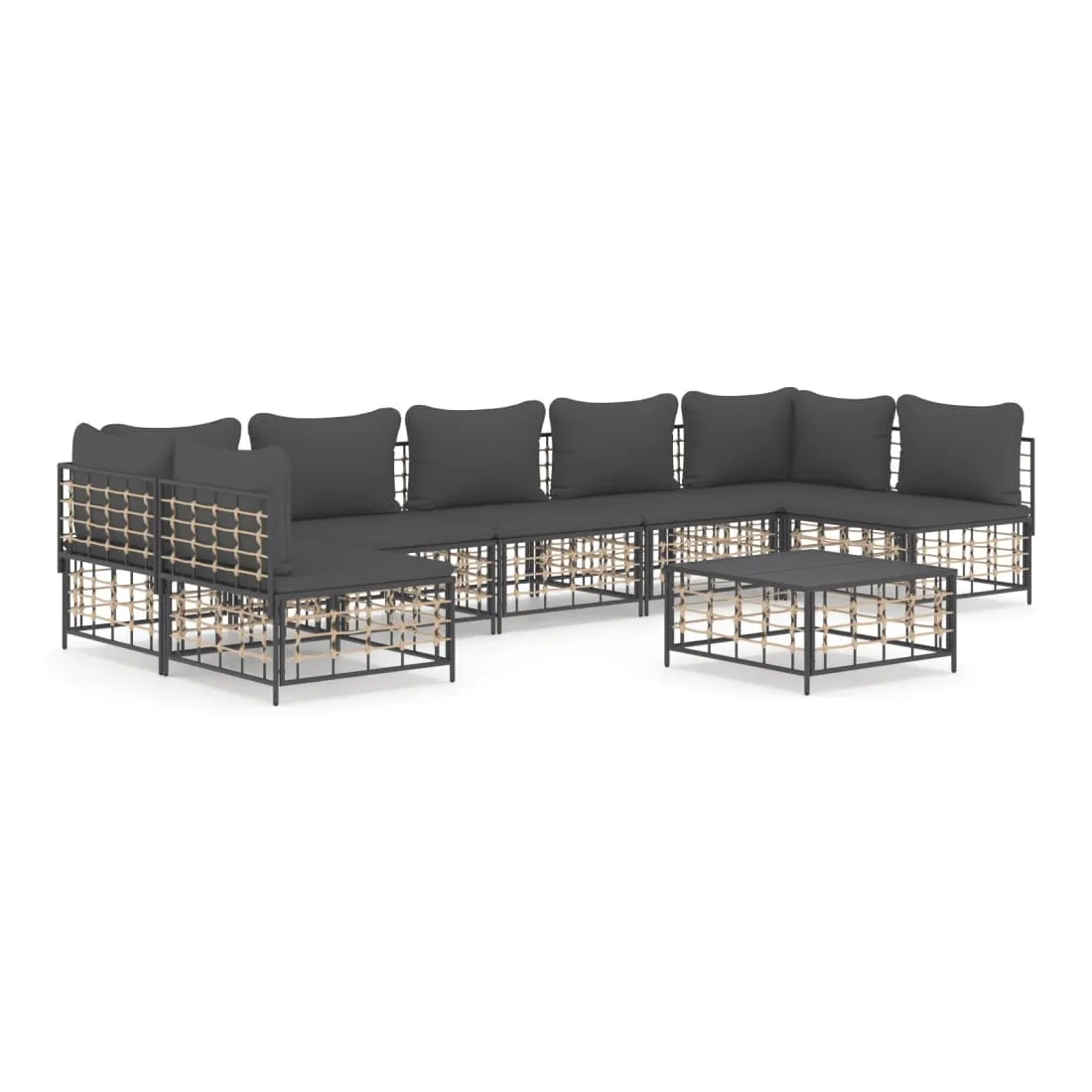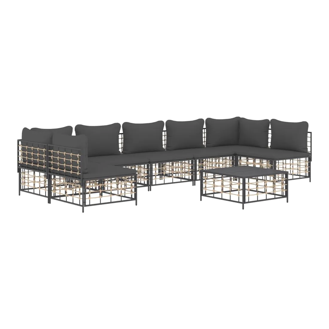 Profitez d'un moment de café confortable dans votre espace extérieur avec cet ensemble de salon de jardin ! C'est un complément parfait à votre jardin et à votre terrasse, créant une impression durable ! Matériau résistant aux intempéries : le poly rotin est résistant aux intempéries et facile à nettoyer. Il reste beau à l'extérieur pendant une longue période de temps. Il est plus économique que d'autres matériaux, tout en offrant une excellente qualité, une commodité et un aspect esthétique.Cadre robuste et stable : le cadre en acier de l'ensemble de salon assure robustesse et stabilité.Expérience d'assise confortable : le dossier ajoute un confort d'assise supplémentaire pour l'ensemble de salon. De plus, les coussins bien rembourrés offrent un confort pour votre temps d'assise.Dessus de table robuste : le dessus de table robuste de la table basse est parfait pour placer des repas, des boissons, des vases, des bols de fruits ou d'autres objets décoratifs.Conception modulaire : l'ensemble de salon de jardin est flexible et facile à déplacer, vous pouvez donc le combiner avec d'autres segments modulaires de la boutique en ligne pour créer vos propres configurations personnelles de salon de jardin ! Remarque :Pour que vos meubles d'extérieur restent beaux, nous vous recommandons de les protéger avec une housse imperméable.