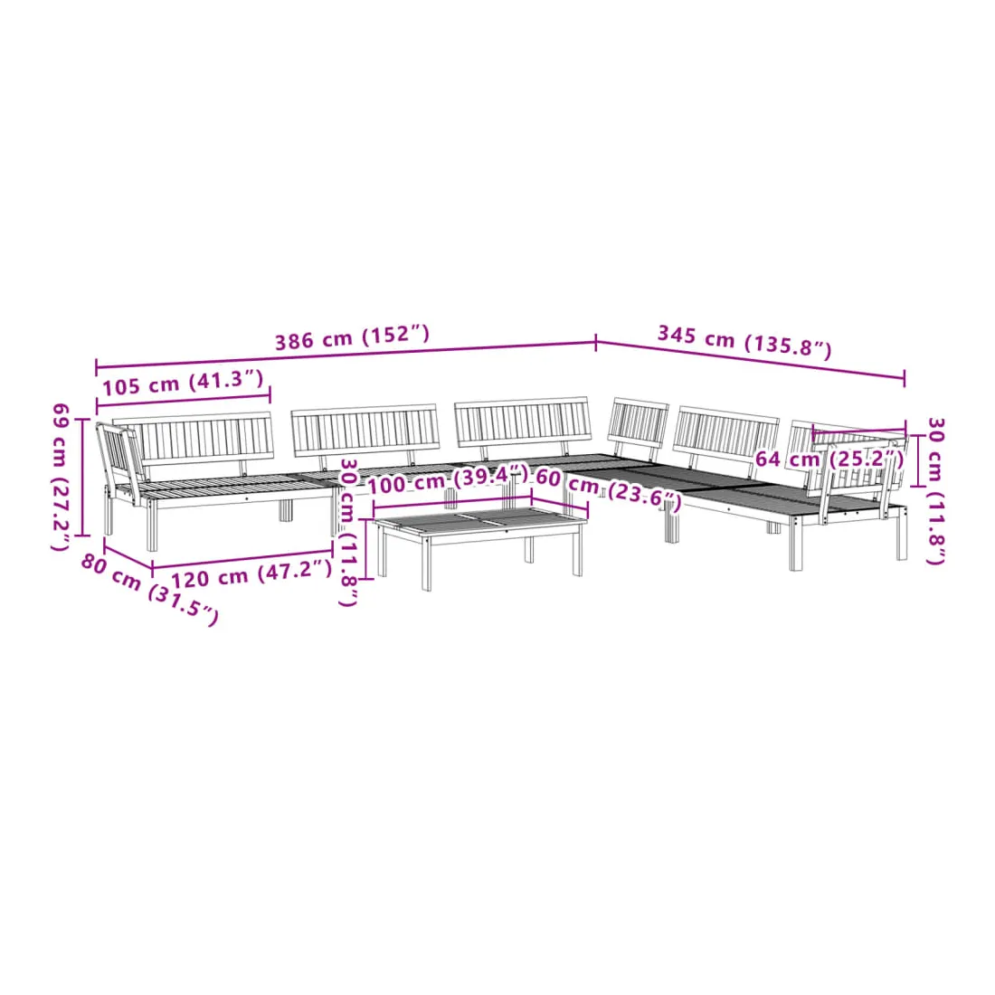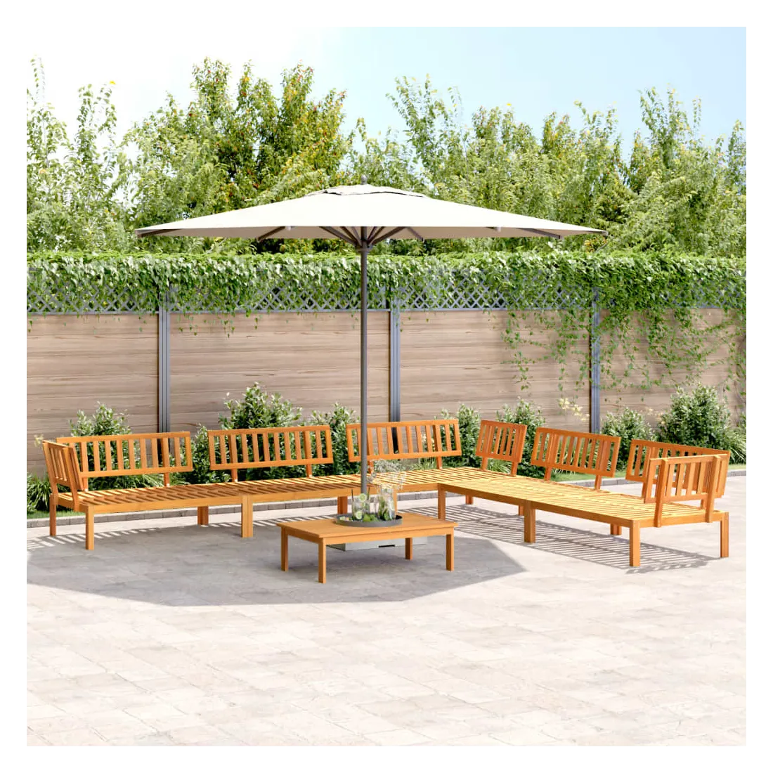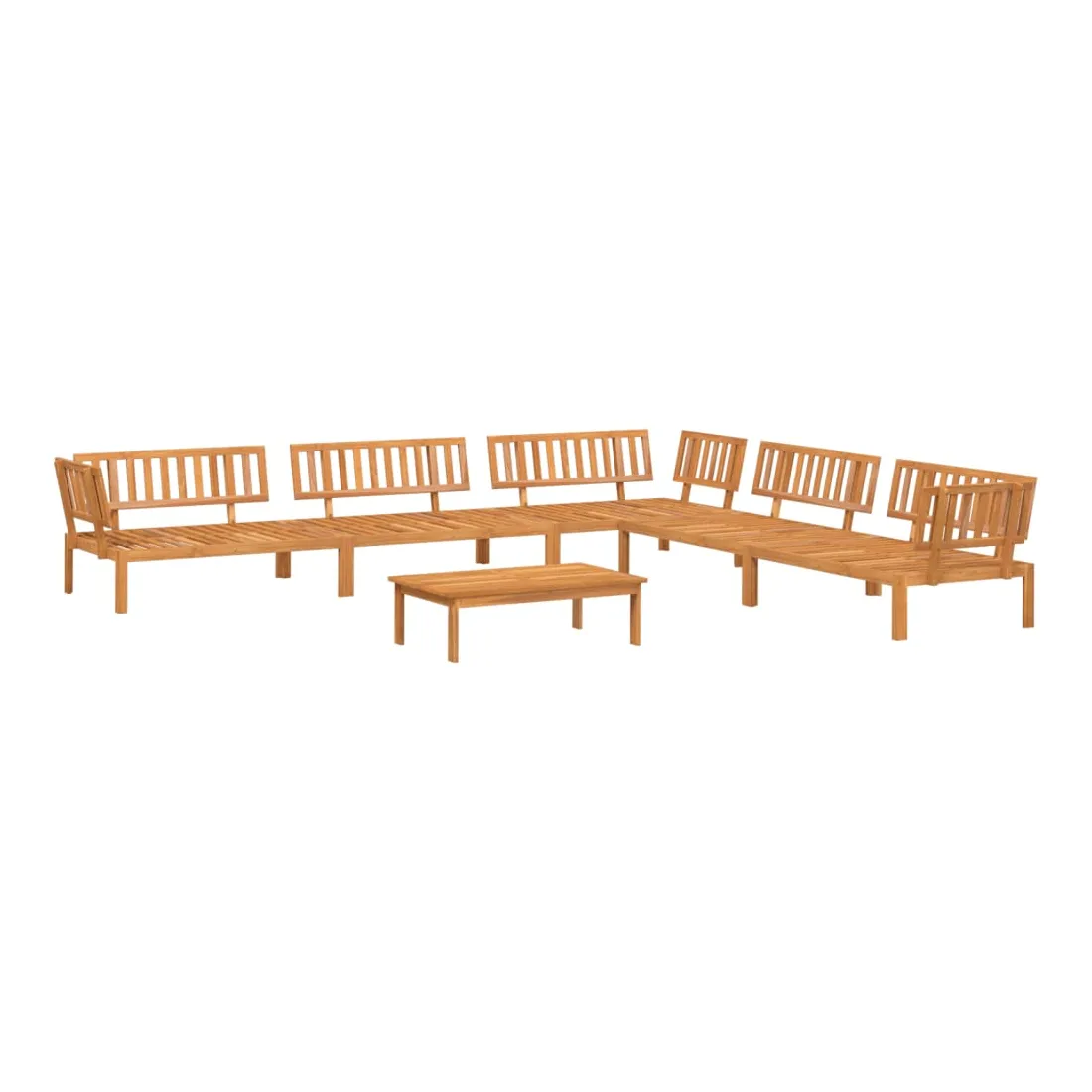 Cet ensemble de canapés en palettes en bois au design à lattes sera un excellent ajout à votre jardin, patio ou terrasse pour profiter d’un moment agréable en famille ou entre amis. Matériau durable : le bois d'acacia massif est un matériau naturel magnifique. Le bois d'acacia un bois dur tropical, qui est dense, robuste et durable.Dessus stable et facile à nettoyer : cette table de jardin a un dessus en bois d'acacia robuste, durable et facile à nettoyer avec un chiffon humide.Bonne ventilation et prévention de l'accumulation d'eau : la conception à lattes favorise une circulation optimale de l'air et empêche efficacement l'accumulation d'eau, assurant ainsi une assise sèche et confortable.Conception modulaire : cet ensemble de meubles d'extérieur a une conception modulaire, ce qui le rend complètement flexible et facile à déplacer, afin que vous puissiez créer un agencement de meubles d'extérieur personnalisé. Bon à savoir :Pour que vos meubles d'extérieur restent beaux, nous vous recommandons de les protéger avec une housse imperméable.Le coussin n'est pas inclus avec ce canapé palette. Nous offrons un coussin de palette standard de 120x80 cm. Vous pouvez consulter notre boutique pour trouver un coussin assorti.