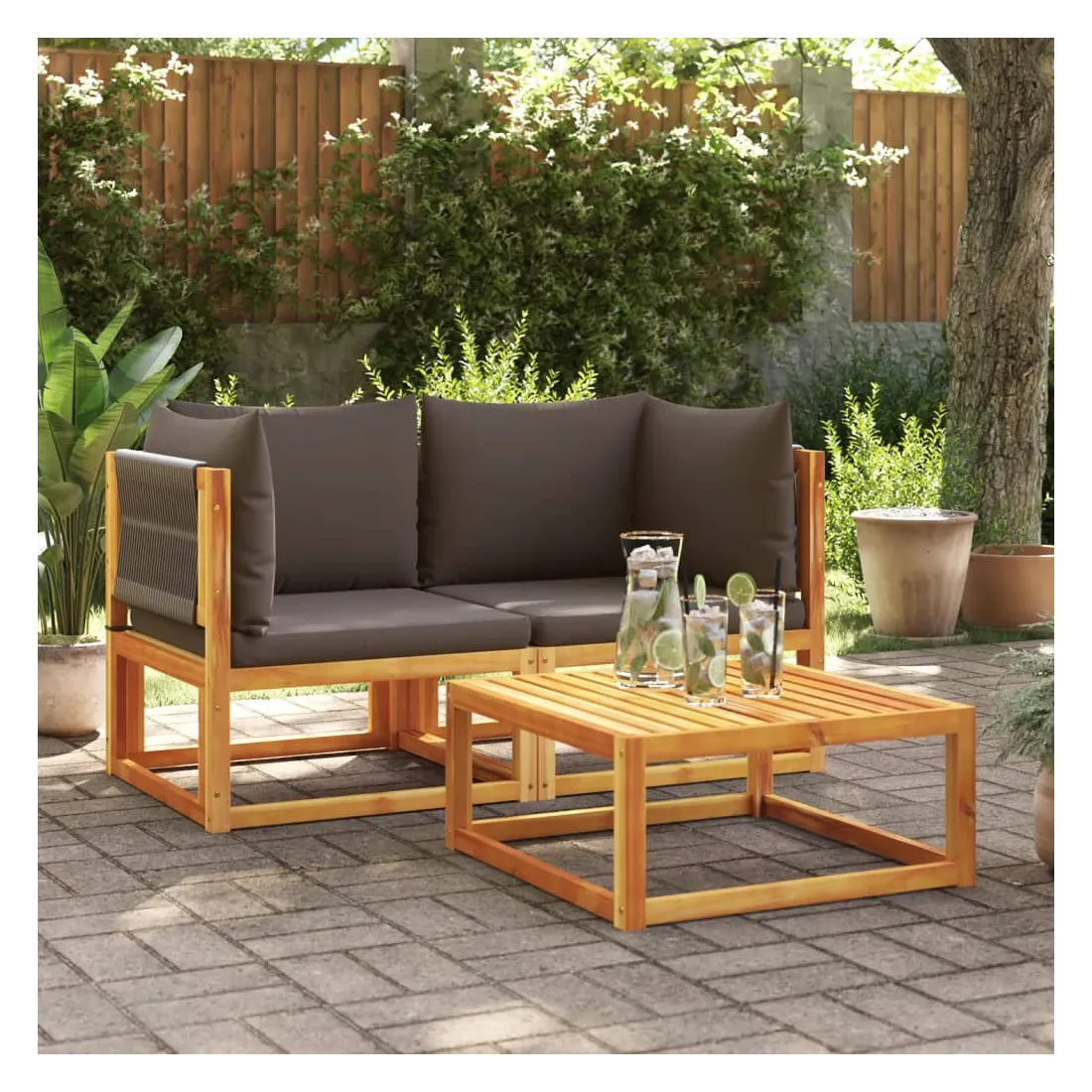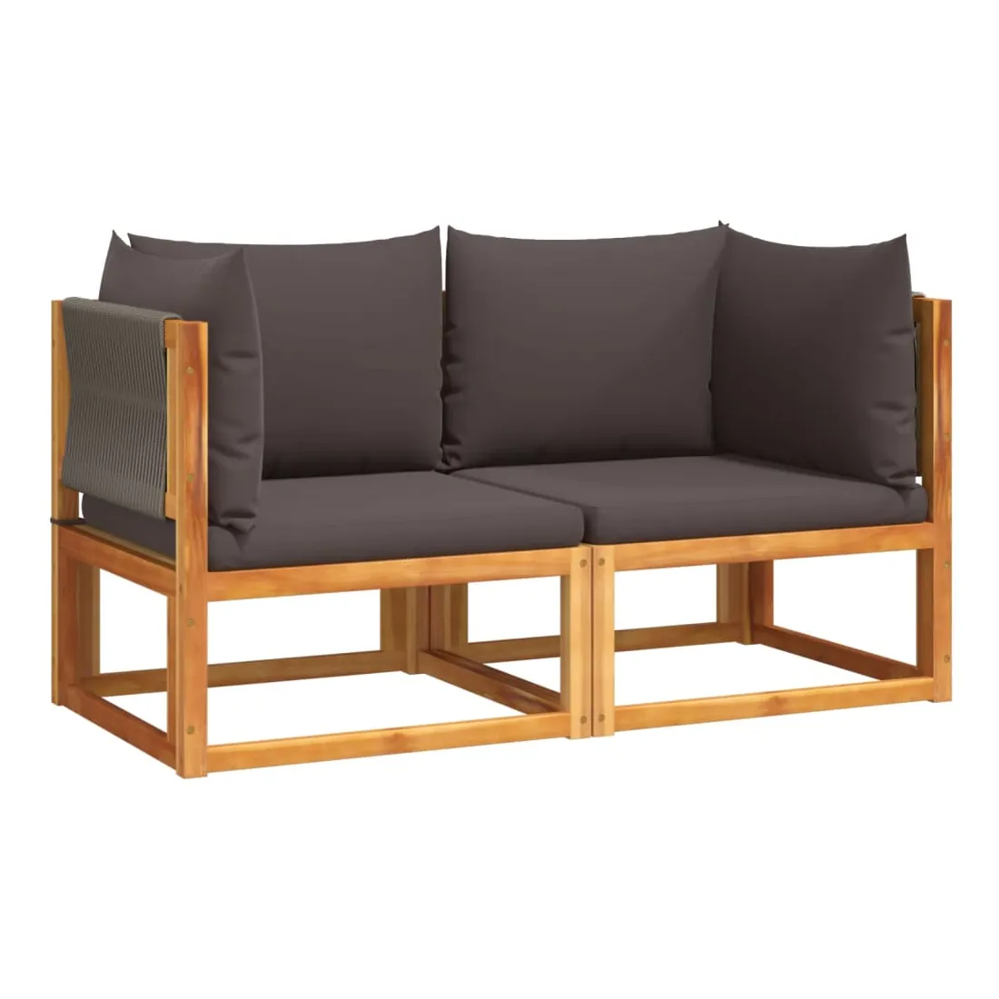 vidaXLCes canapés de jardin en bois avec dossiers et coussins en corde tressée seront un excellent ajout à votre jardin, terrasse ou patio pour discuter en famille et entre amis ou simplement profiter du beau temps. Dossier tressé élégant : ce canapé de jardin est doté de dossiers en corde finement travaillés, ajoutant une touche sophistiquée à tout espace extérieur.Cadre robuste et stable : le bois d'acacia massif est connu pour sa résistance et sa durabilité. Ses couleurs variées et ses motifs de grain uniques lui confèrent un aspect attrayant. Avec une bonne stabilité et une bonne résistance aux intempéries, il est idéal pour la fabrication de meubles d'intérieur et d'extérieur.Expérience d'assise confortable : Ce mobilier d'extérieur, doté de coussins épais et rembourrés, offre une expérience d'assise confortable.Housse amovible et lavable : Ces coussins d'assise sont dotés de housses amovibles pour un lavage et un entretien faciles.Conception modulaire : Ce mobilier d'extérieur a une conception modulaire, ce qui le rend entièrement flexible et facile à déplacer, afin que vous puissiez créer un aménagement de mobilier d'extérieur personnalisé. Bon à savoir :Pour que votre mobilier d'extérieur reste beau, nous vous recommandons de le protéger avec une housse imperméable.
