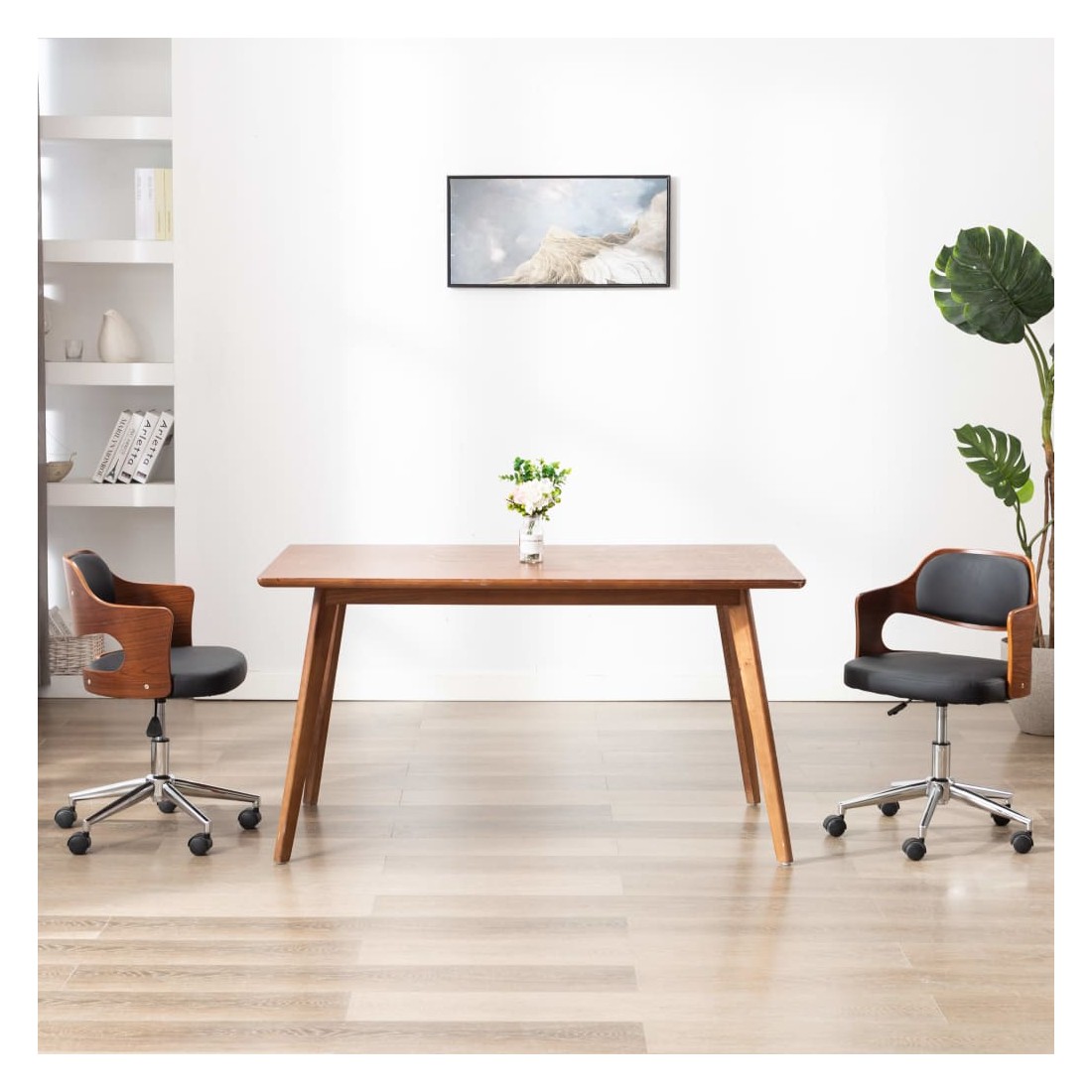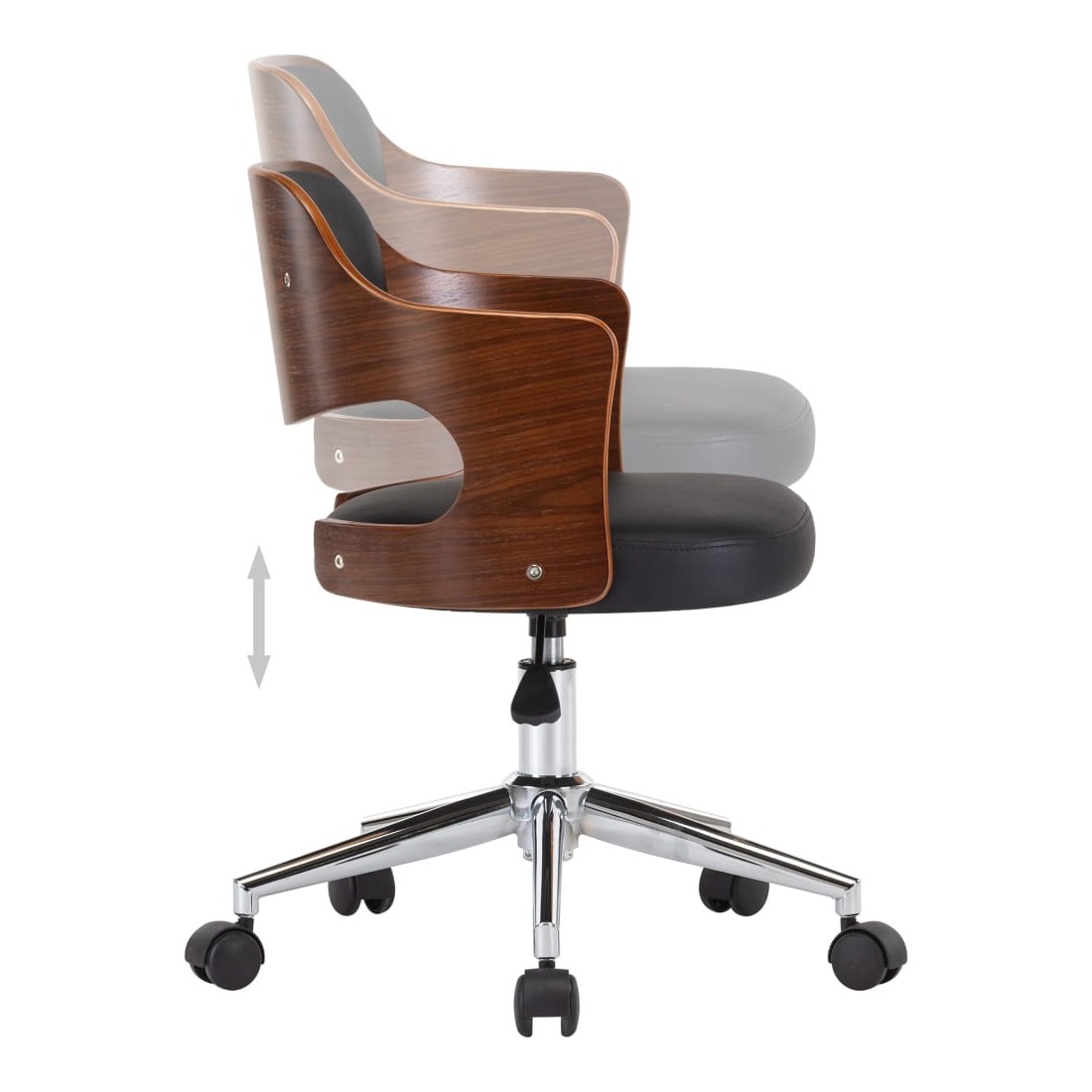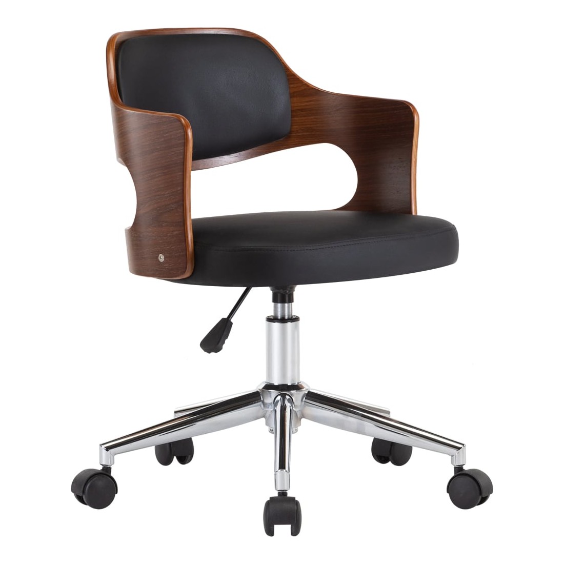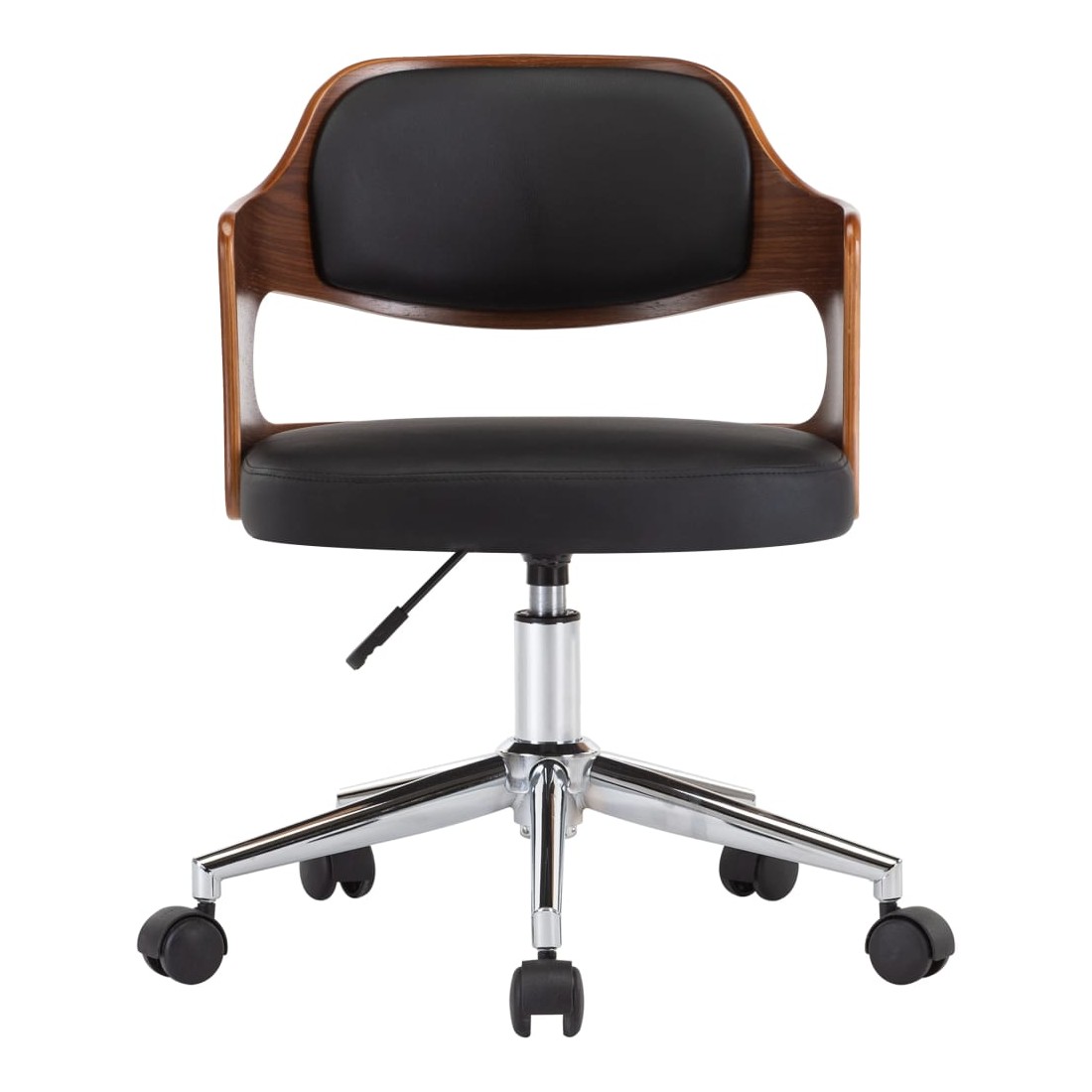 Cette chaise de bureau, avec son design élégant et contemporain, est destinée à ajouter une touche de classe à n'importe quel salon, dortoir ou bureau. L'assise et le dossier sont tapissés de similicuir facile à nettoyer, ce qui permet d'obtenir un confort optimal de la chaise. Le cadre en bois ajoute de la stabilité à cette chaise latérale. Le dossier et le siège soutiennent votre dos et réduisent la pression sur votre colonne vertébrale. Cette chaise est équipée de 5 roulettes pour la déplacer facilement. Le mécanisme de levage à gaz vous permet de régler la hauteur de la chaise. Elle apportera une touche de style à n'importe quelle maison ou bureau. La chaise de bureau est facile à assembler.