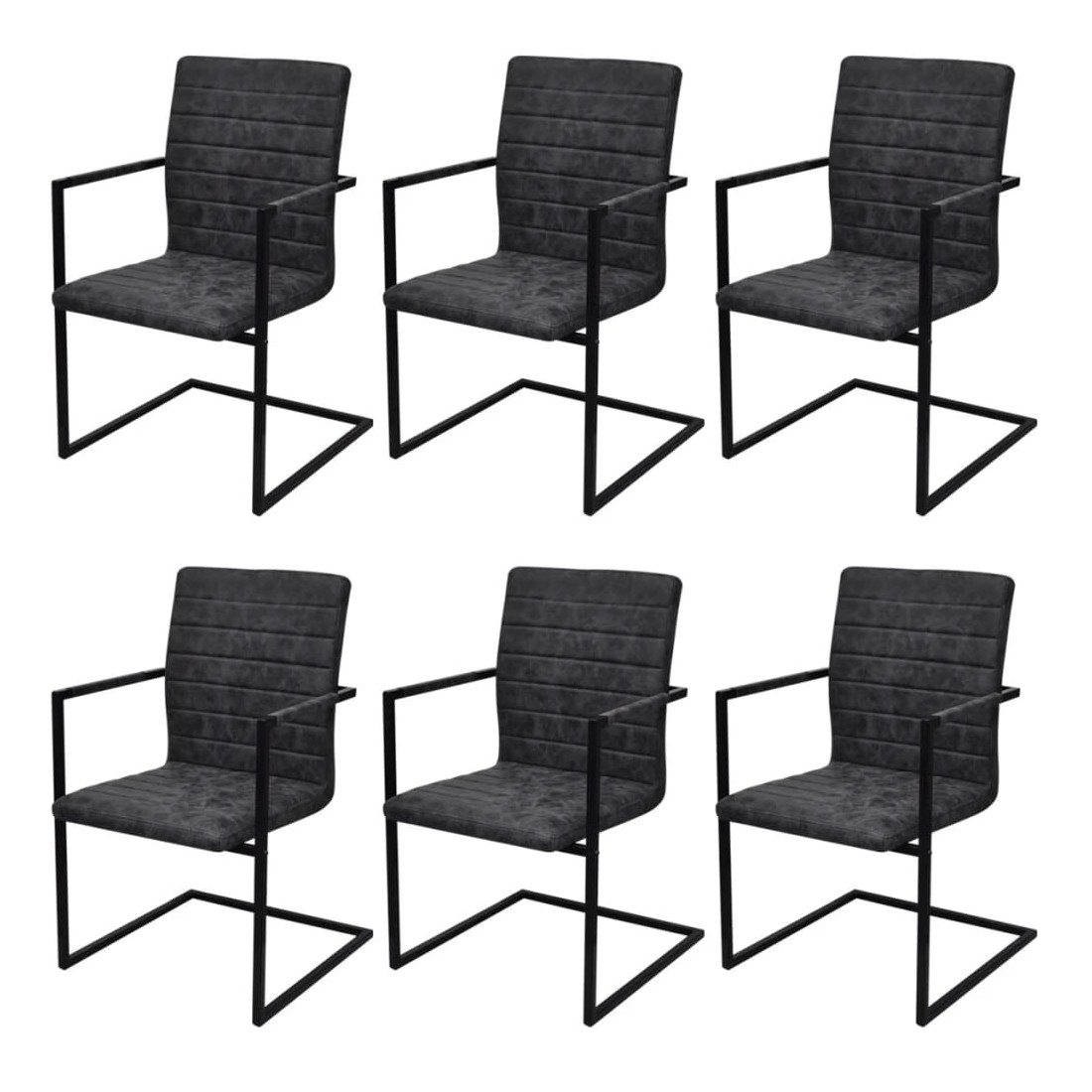 vidaXLCes chaises cantilever de salle à manger ont un aspect élégant qui convient parfaitement à un intérieur moderne. Elles deviendront le point central de votre salle à manger à la maison ou ajouteront une touche élégante à votre décor de bureau. Le siège rembourré de mousse épaisse offrira le plus grand confort d'assise et un excellent soutien pour votre dos. Le siège nervuré est revêtu de cuir PU résistant et durable, ce qui confère aux chaises à manger un aspect et un toucher luxueux. Cette chaise à manger est non seulement légère mais aussi robuste grâce à sa structure en acier tubulaire solide. L'assemblage est vraiment facile. La livraison comprend 6 chaises de salle à manger.