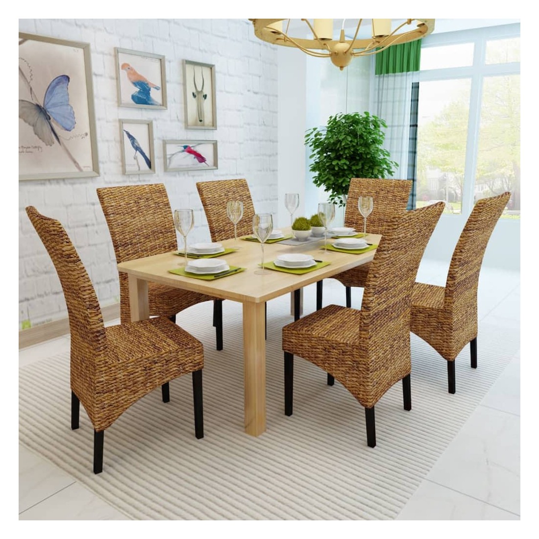Chaises à manger lot de 6 bois solide de manguier et abaca