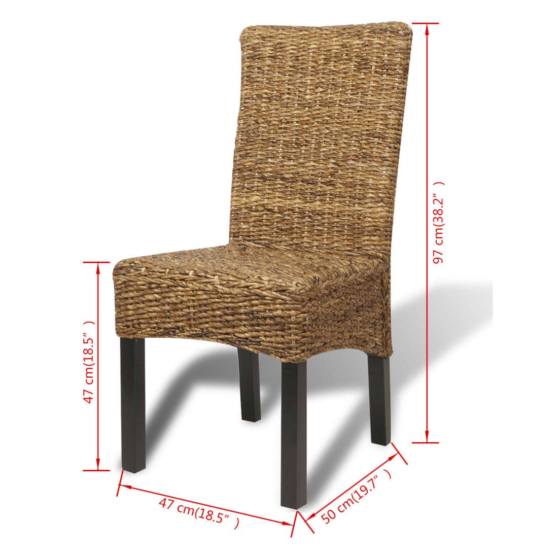 Il s'agit d'une ensemble de 6 chaises en fibres d'abaca tissées, faites à la main et de haute qualité. Grâce à leur style philippin, ces chaises en fibres d'abaca tissées seront un excellent ajout à votre intérieur. La structure en bois dur et les fibres d'abaca naturelles (feuilles de banane) rendent les chaises non seulement stables et robustes mais également agréables à l’œil. De plus, les sièges recouverts d'abaca sont très confortables. Si vous cherchez quelque chose pour compléter votre décor de cuisine ou de salle à manger, ces chaises habilement tissées sont un excellent choix. La livraison comprend 6 chaises. Veuillez noter : les chaises sont tissées à la main avec des fibres d'abaca naturelles, elles peuvent donc avoir des variations de couleur.