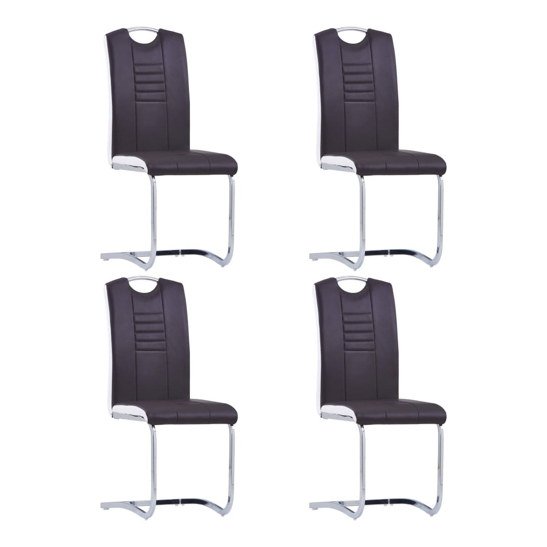 vidaXLNotre ensemble de chaises de salle à manger cantilever présente un design élégant et moderne, qui sera parfait pour votre maison, votre restaurant ou votre bureau. Les chaises de salle à manger sont recouvertes d'un similicuir durable et facile à nettoyer, ainsi que d'un rembourrage épais pour un maximum de confort. Son design ergonomique rend la chaise de salle à manger extrêmement confortable. Grâce au cadre en acier chromé, les chaises sont considérablement robustes et stables. De plus, avec une poignée sur le dossier, les chaises de salle à manger sont pratiques et faciles à déplacer. La livraison comprend 4 chaises de salle à manger.