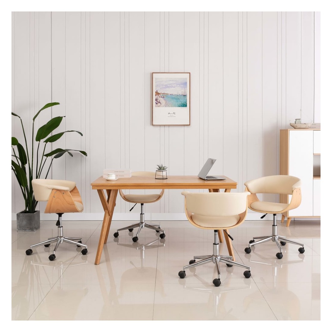 Cet ensemble de 4 chaises de salle à manger pivotante, au design élégant et contemporain, est un supplément parfait, pratique et moderne à toute salon, chambre à coucher, salon ou bureau. Elle offre un endroit confortable pour votre famille pour dîner dans la salle à manger ou manger et se reposer dans le salon. Le siège et le dossier sont ergonomiques, tapissés en similicuir doux et bien rembourrés de mousse, ce qui rend la chaise très confortable. Le cadre en bois et les pieds en métal ajoutent à sa durabilité et sont esthétiques. La chaise est pivotante à 360 degrés et dispose d'un mécanisme réglable en hauteur avec le système de levage à gaz. Ces chaises de salle à manger sont faciles à assembler.