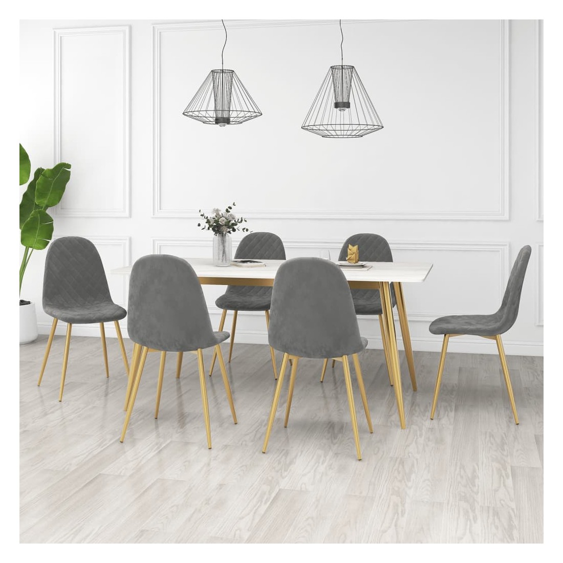 À la fois minimalistes et élégantes, ces chaises de salle à manger sont conçues pour se démarquer dans votre espace de vie. Les chaises de cuisine offrent à votre famille un endroit confortable pour dîner dans la salle à manger ou lire et vous reposer dans le salon. Grâce au siège et au dossier rembourrés en mousse épaisse, les chaises latérales vous apporteront sûrement un confort d'assise optimal. De plus, les pieds chromés dorés ajoutent à leur stabilité et à leur robustesse.