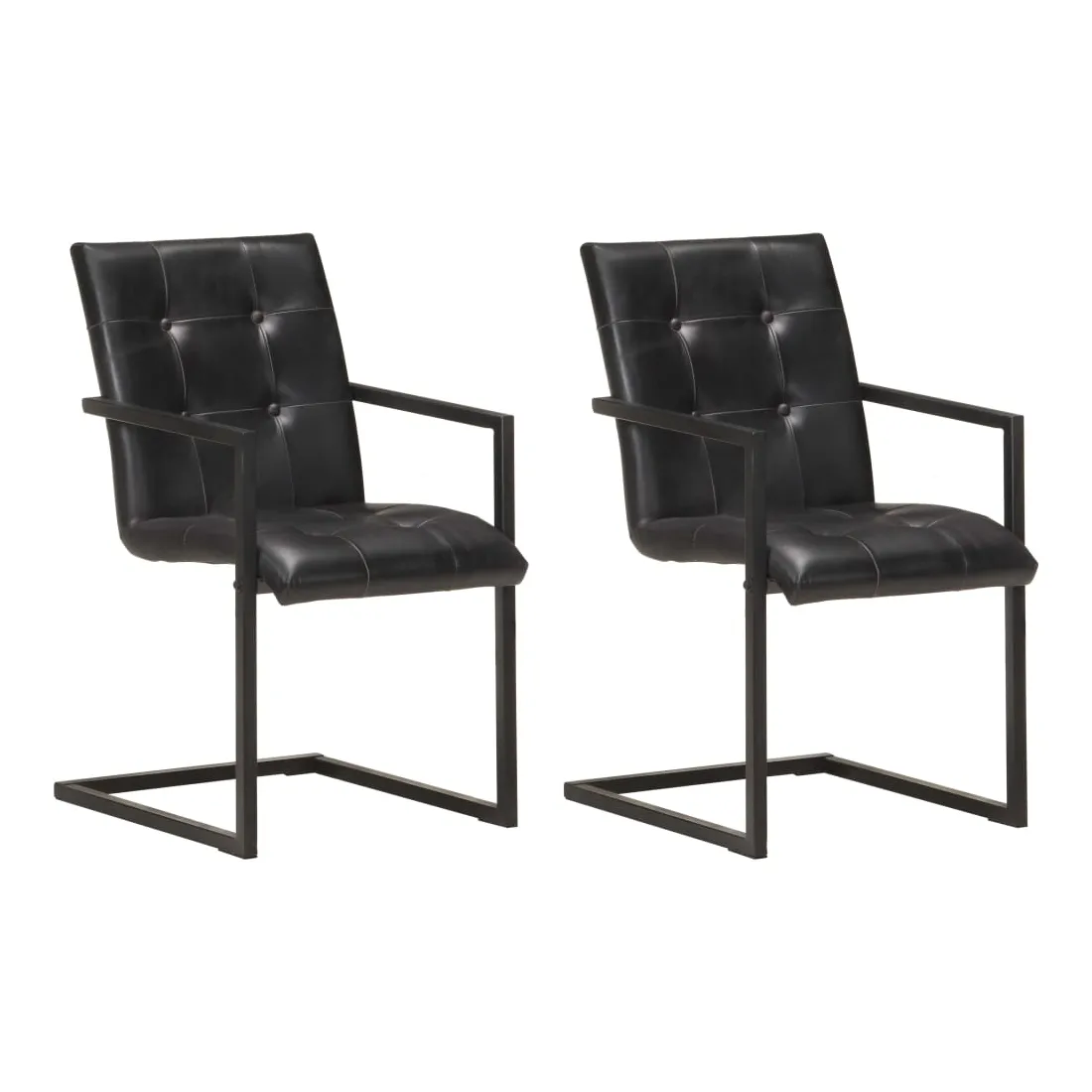 Chaises à manger cantilever lot de 2 noir cuir véritable