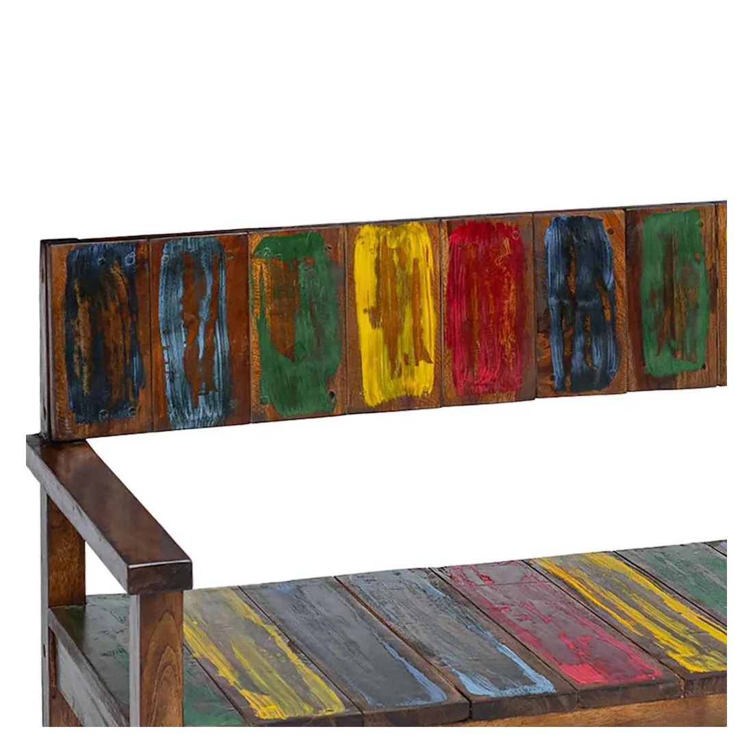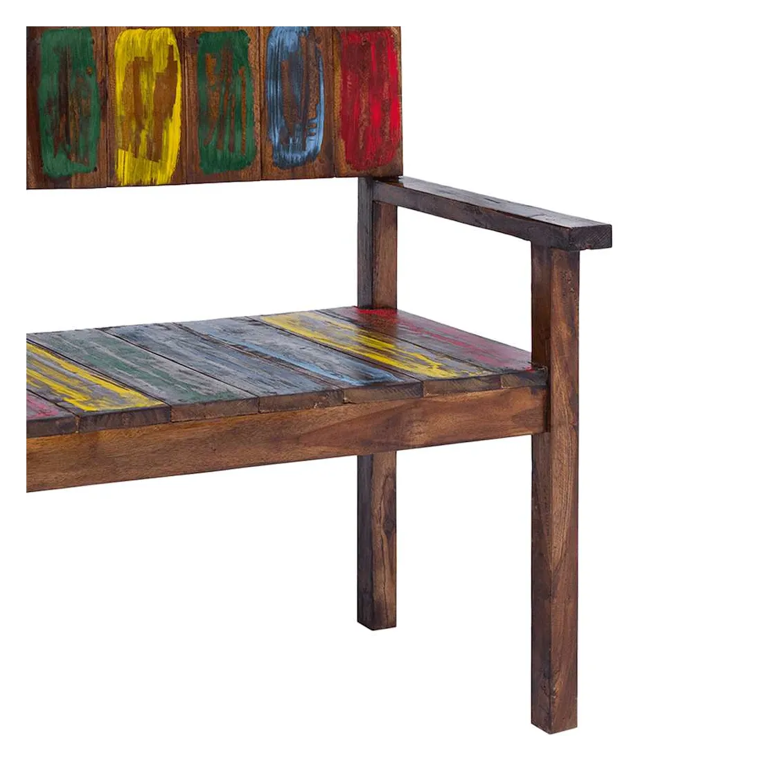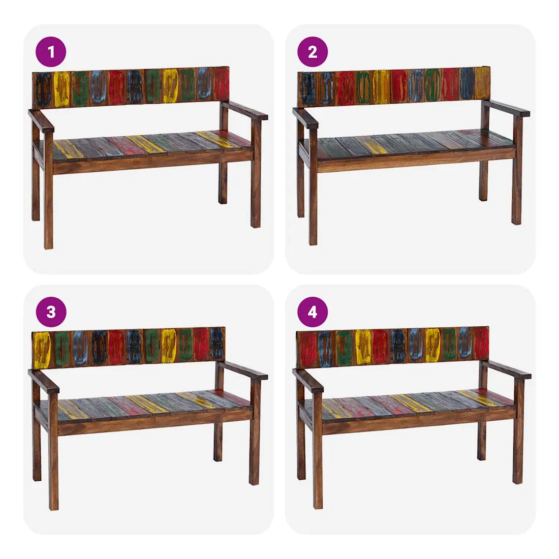 Ces chaises de salle à manger en bois de style vintage ajouteront une touche antique et constitueront un supplément intemporel au décor de votre salle à manger. Les chaises sont fabriquées à la main à partir de bois de récupération massif, une combinaison de bois récupérés, y compris le teck, le bois de manguier, le bois de pin, le hêtre, etc. Ces bois sont recyclés à partir de vieux bâtiments tels que des usines, des hangars et des bateaux. Cela en fait une option écologique excellente dans la fabrication de meubles. Comme chaque pièce est faite à la main, les couleurs varient avec beaucoup de bleus, de verts, de rouges et de jaunes révélés. Cela signifie même que chaque chaise est unique ! Remarque importante : la couleur et les grains de bois peuvent varier d'une pièce à l'autre, ce qui rend chaque article unique et légèrement différent l'un de l'autre ; la livraison est aléatoire.