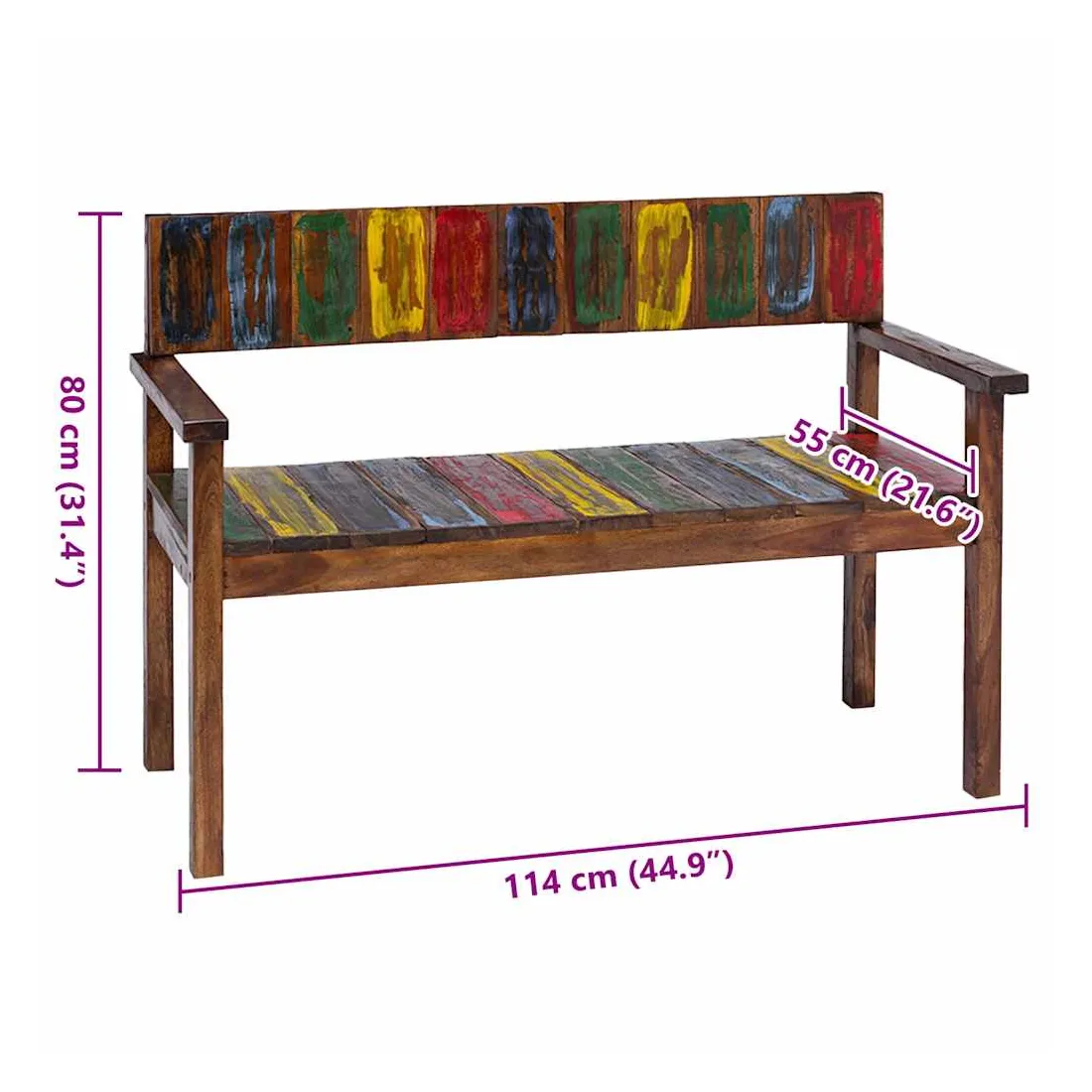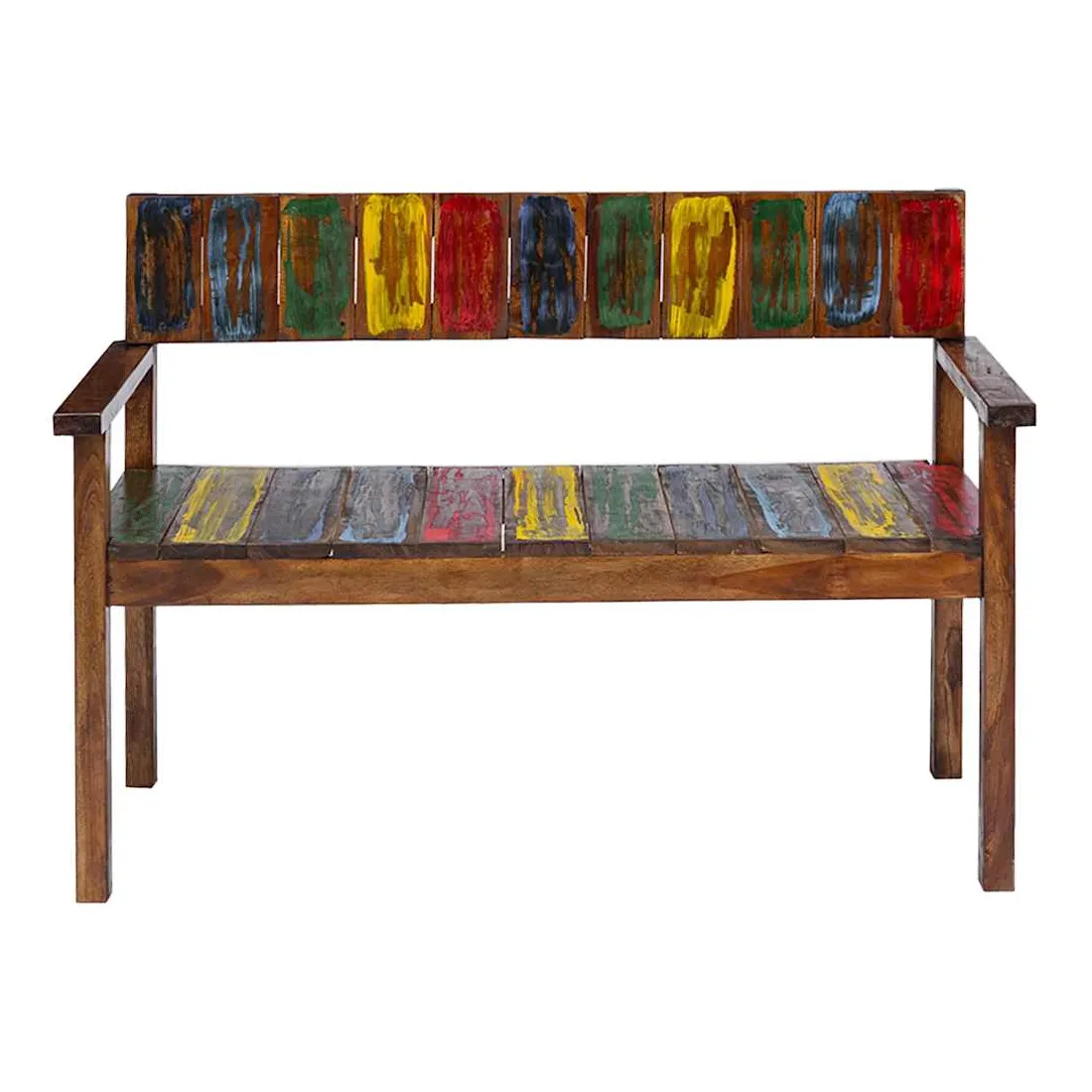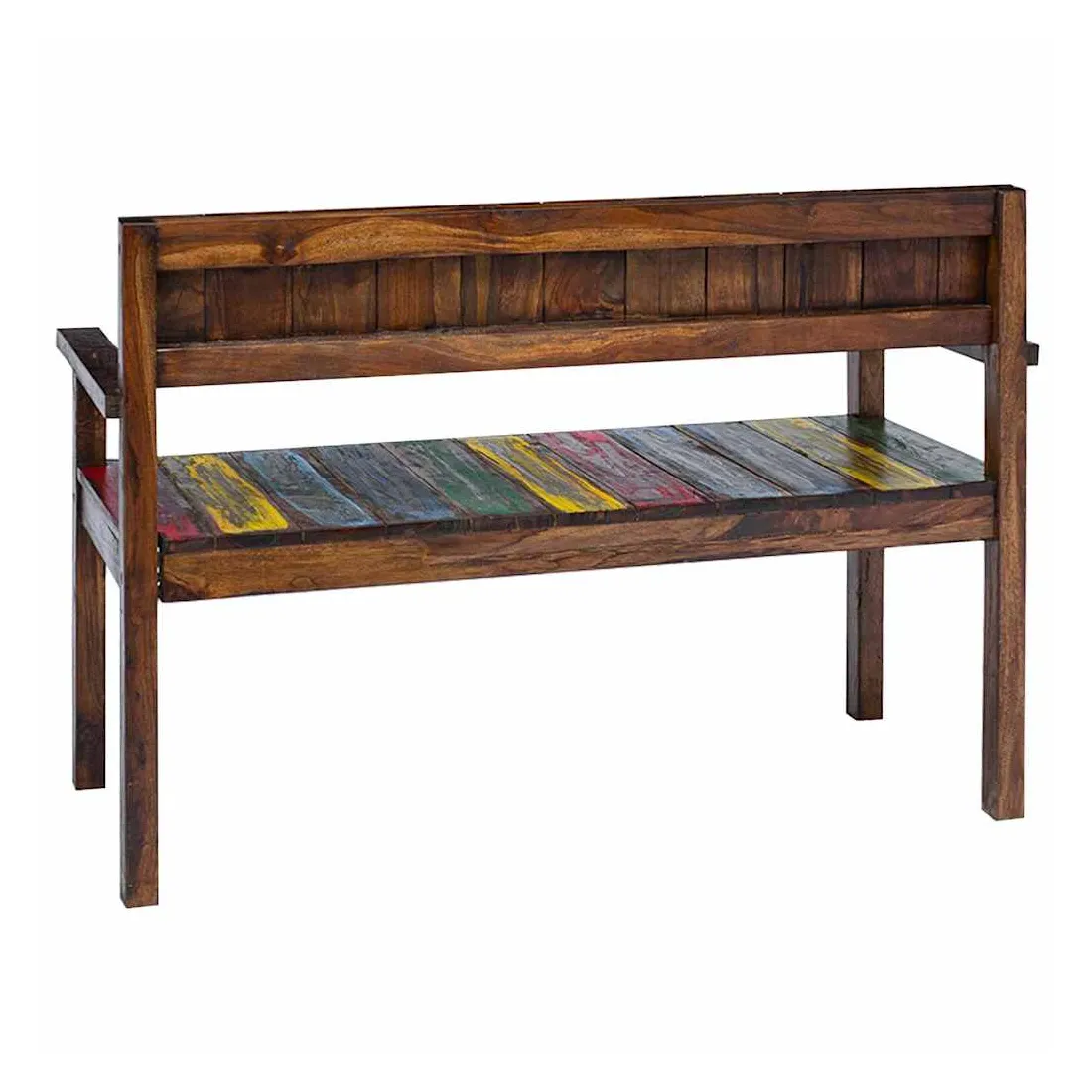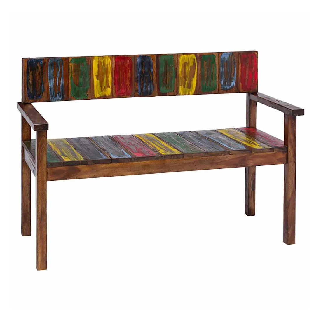 Ces chaises de salle à manger en bois de style vintage ajouteront une touche antique et constitueront un supplément intemporel au décor de votre salle à manger. Les chaises sont fabriquées à la main à partir de bois de récupération massif, une combinaison de bois récupérés, y compris le teck, le bois de manguier, le bois de pin, le hêtre, etc. Ces bois sont recyclés à partir de vieux bâtiments tels que des usines, des hangars et des bateaux. Cela en fait une option écologique excellente dans la fabrication de meubles. Comme chaque pièce est faite à la main, les couleurs varient avec beaucoup de bleus, de verts, de rouges et de jaunes révélés. Cela signifie même que chaque chaise est unique ! Remarque importante : la couleur et les grains de bois peuvent varier d'une pièce à l'autre, ce qui rend chaque article unique et légèrement différent l'un de l'autre ; la livraison est aléatoire.