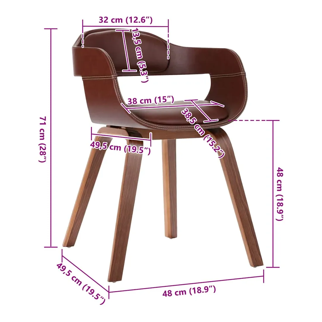 Cette chaise de salle à manger élégante au design esthétique et ergonomique constitue un supplément décoratif et confortable à votre salle à manger et à votre cuisine. La chaise de salle à manger est rembourrée en similicuir, doux pour vous asseoir et facile à nettoyer. Grâce au siège et au dossier rembourrés en mousse, cette chaise d'appoint offre un confort d'assise optimal. Le cadre et les pieds en bois courbé de haute qualité rendent la chaise très solide et durable et ajoutent à son aspect chic.