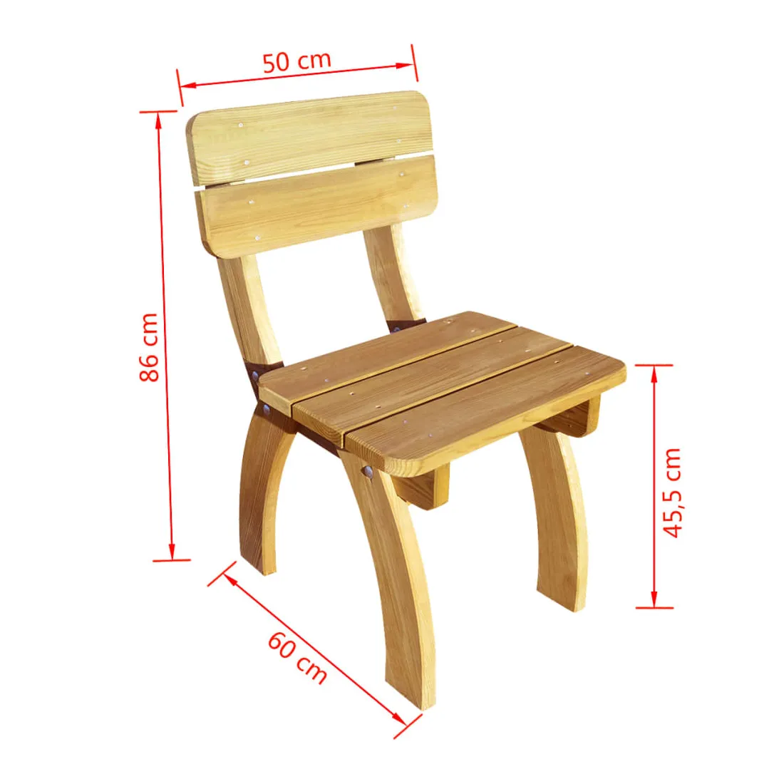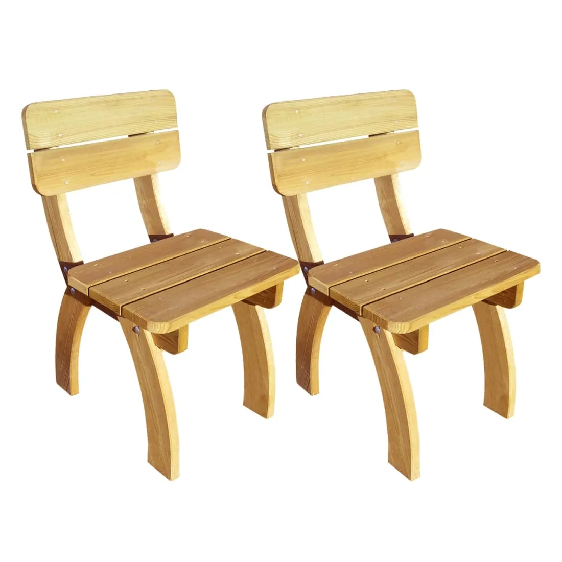 Ces chaises élégantes d'extérieur avec des dossiers vont ajouter une touche de charme rustique à votre jardin ou à tout autre espace de vie extérieur. Fabriquées en pin vert imprégné, de haute qualité, ces chaises de jardin en bois sont très durables et résistantes à la pourriture. La livraison inclut 2 chaises de jardin. L'assemblage est très facile. Veuillez noter que le bois est un produit naturel et peut montrer des imperfections.