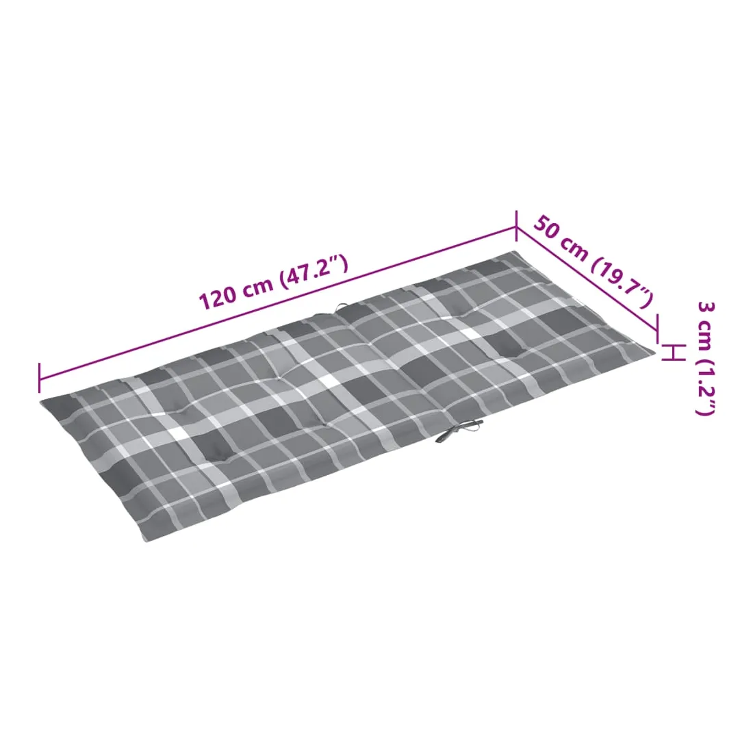 • Dimensions du coussin : 120 x 50 x 3 cm (l x P x H)