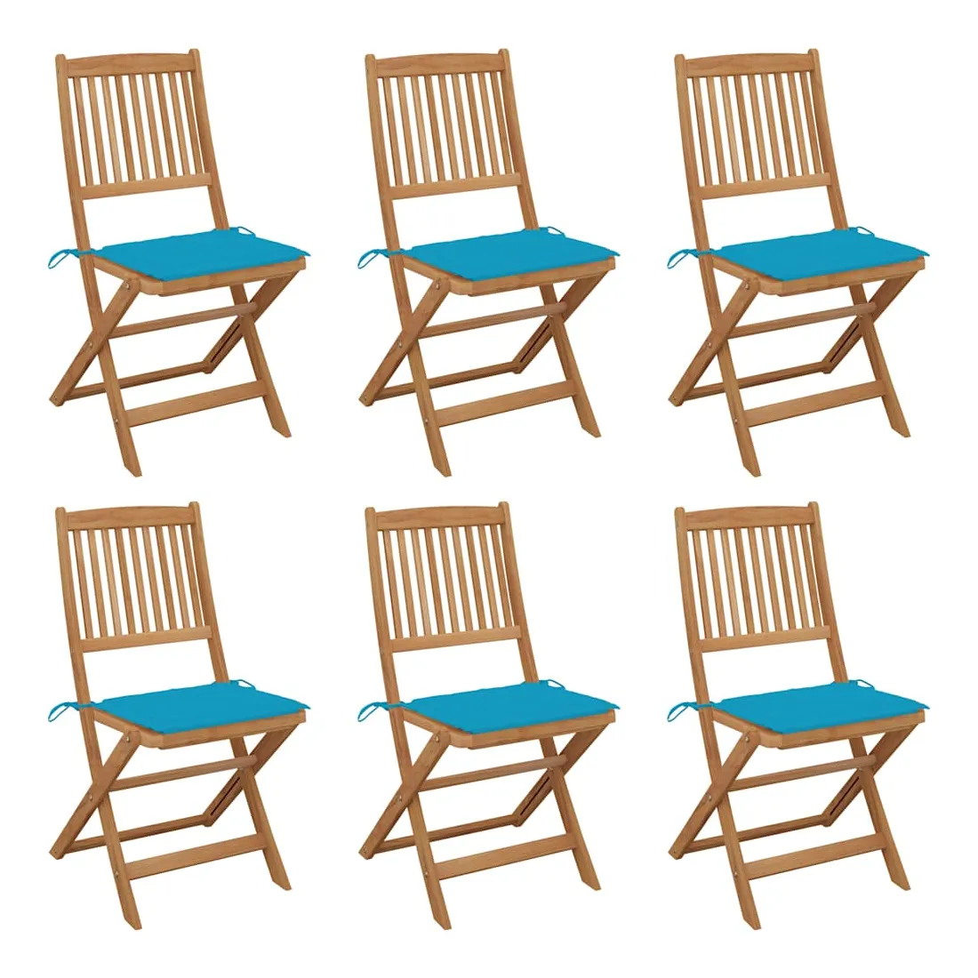Chaises pliables de jardin lot de 6 avec coussins Bois d'acacia