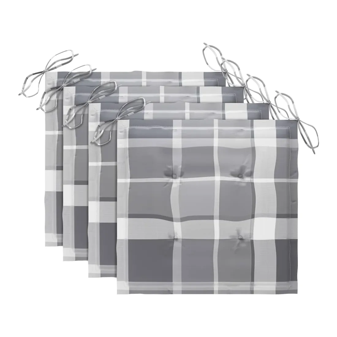 - Le coussin présente un motif à carreaux gris